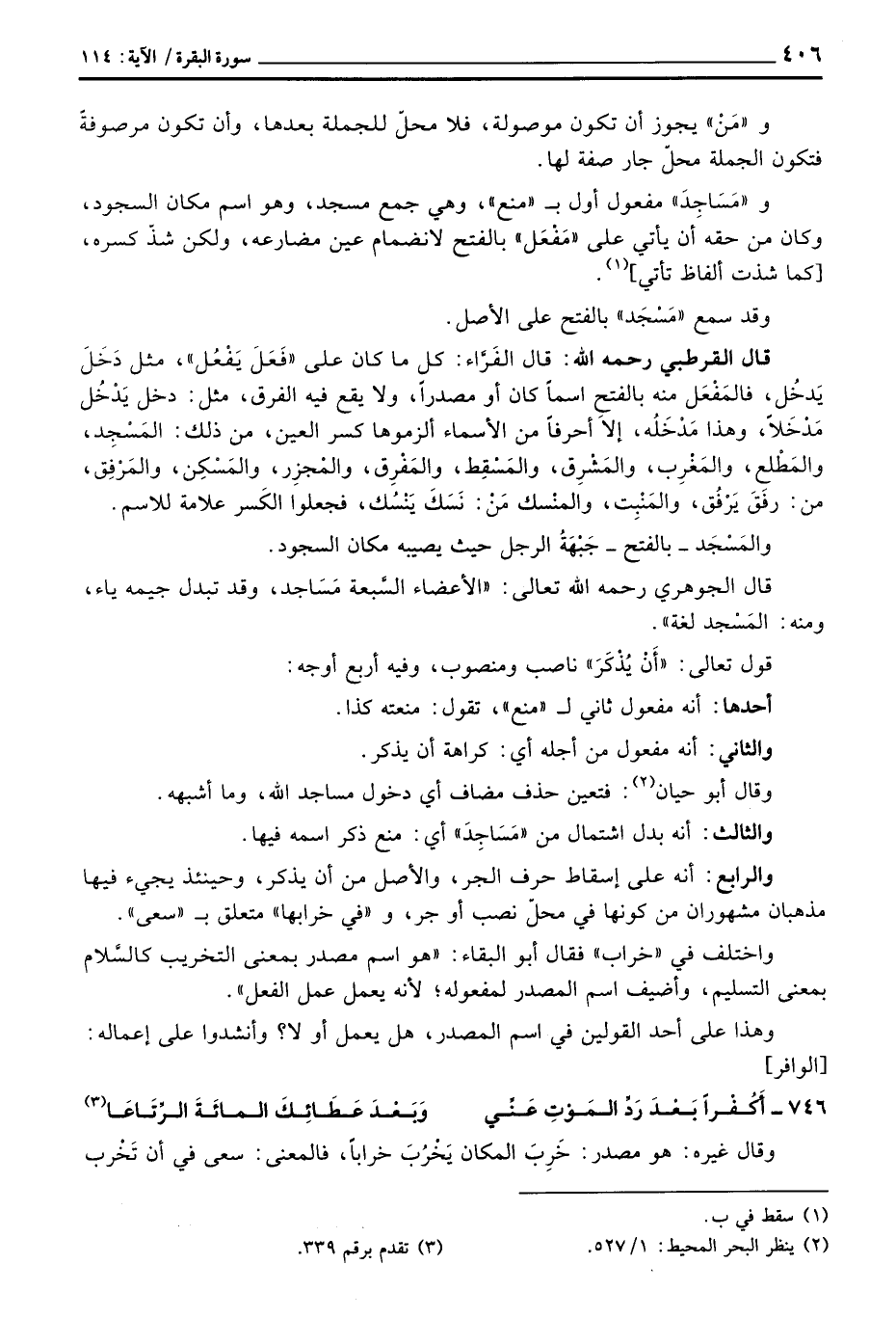 وقال أبو حيان: فتعين حذف مضاف أي دخول مساجد الله، ما أشبهه.
