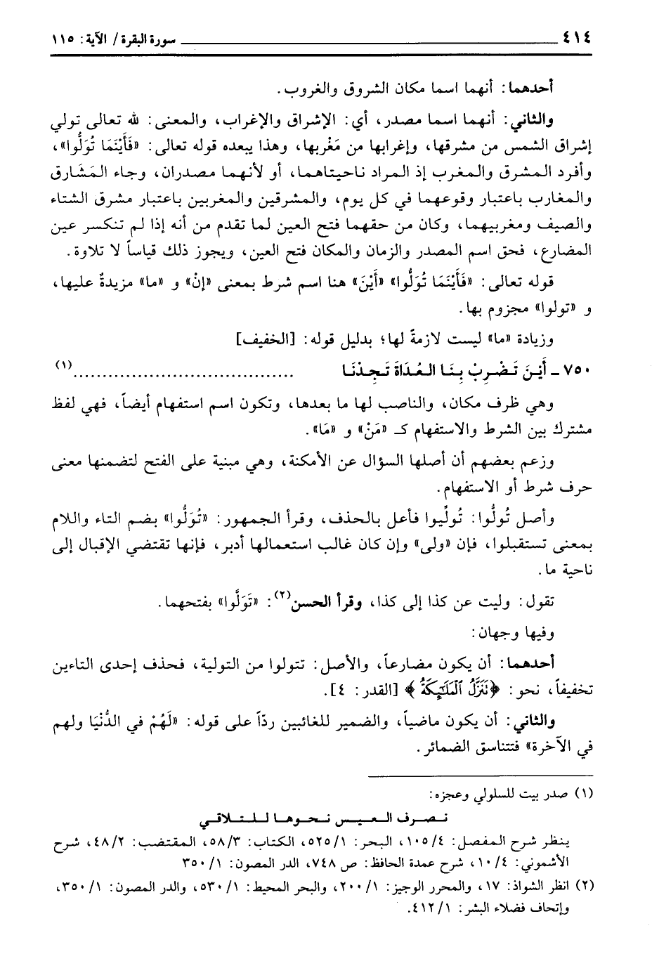 قوله تعالى: {فَأَيْنَمَا تُوَلُّواْ} «أَيْنَ» هنا اسم شرط بمعنى «إنْ» و «ما» مزيدةٌ عليها، و «تولو» مجزوم بها.