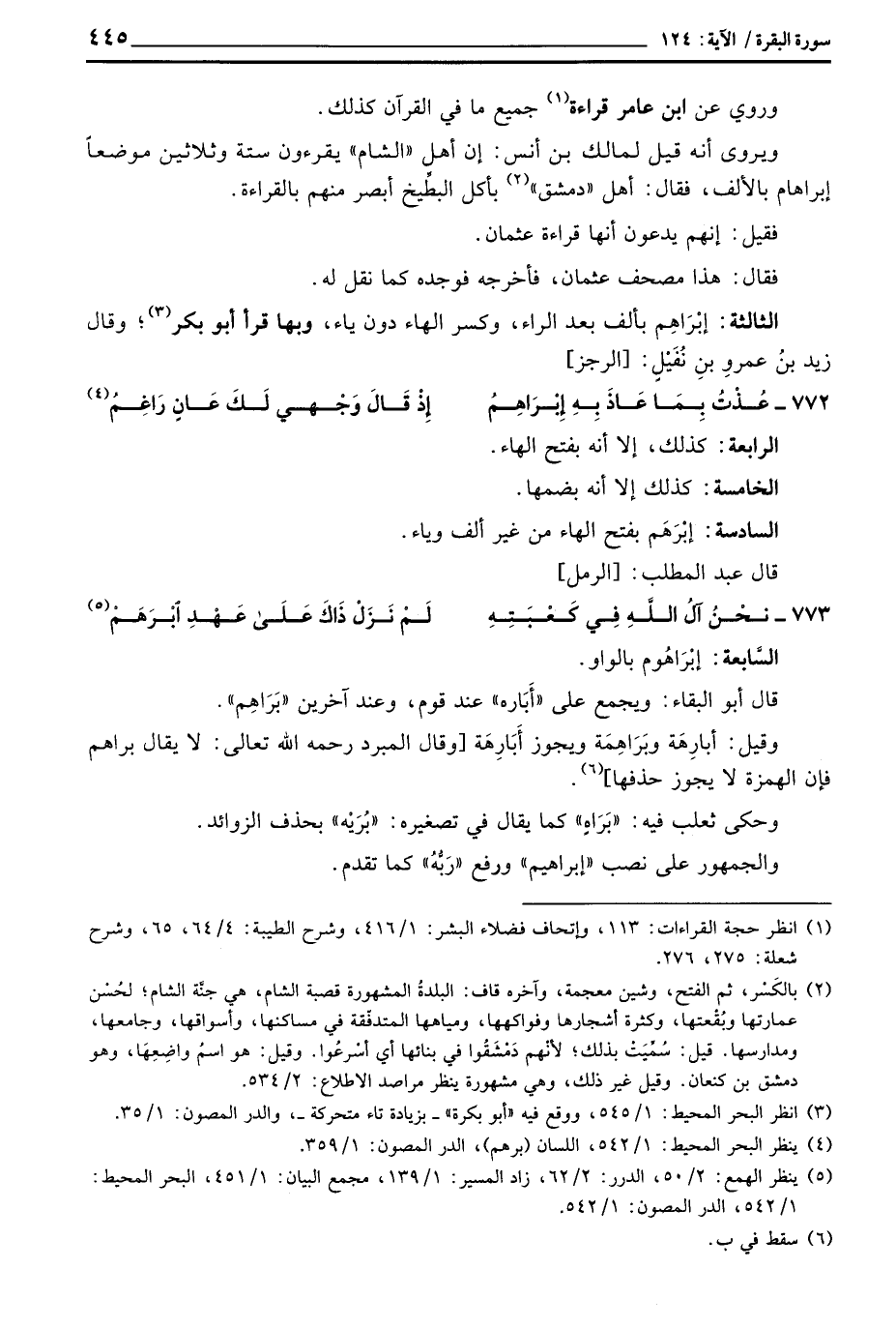 الثالثة: إبْرَاهِم بألف بعد الراء، وكسر الهاء دون ياء، وبها قرأ أبو بكر؛ وقال زيد بنُ عمروِ ينِ نُفَيْلِ: [الرجز]
