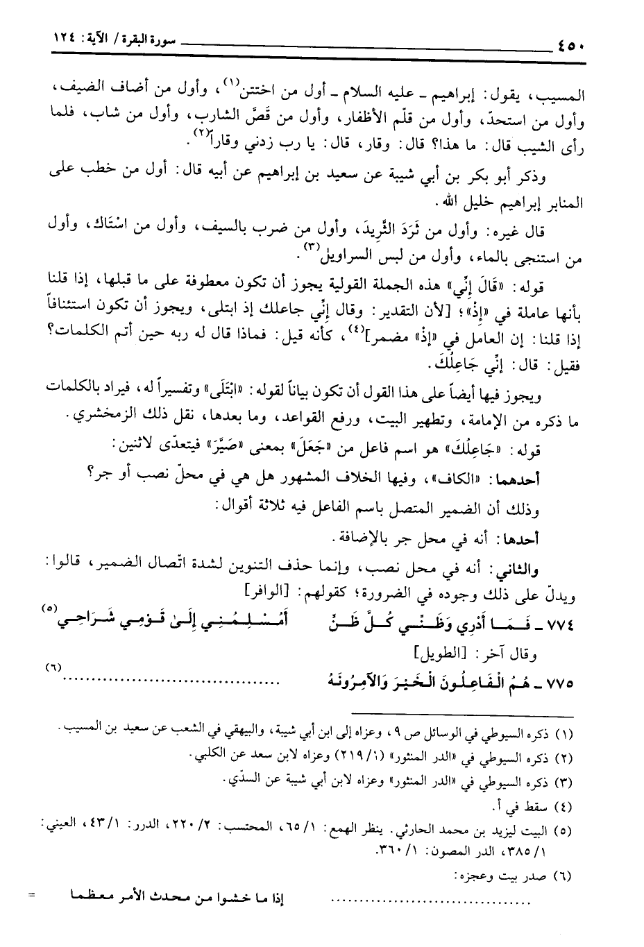 ويجز فيها أيضاً على هذا القول أن تكون بياناً لقوله: «ابْتَلَى» وتفسيبراً له، فيراد بالكلمات ما ذكره من الإمامة، وتطهير البيت، ورفع القواعد، وما بعدها، نقل ذلك الزمخشري.