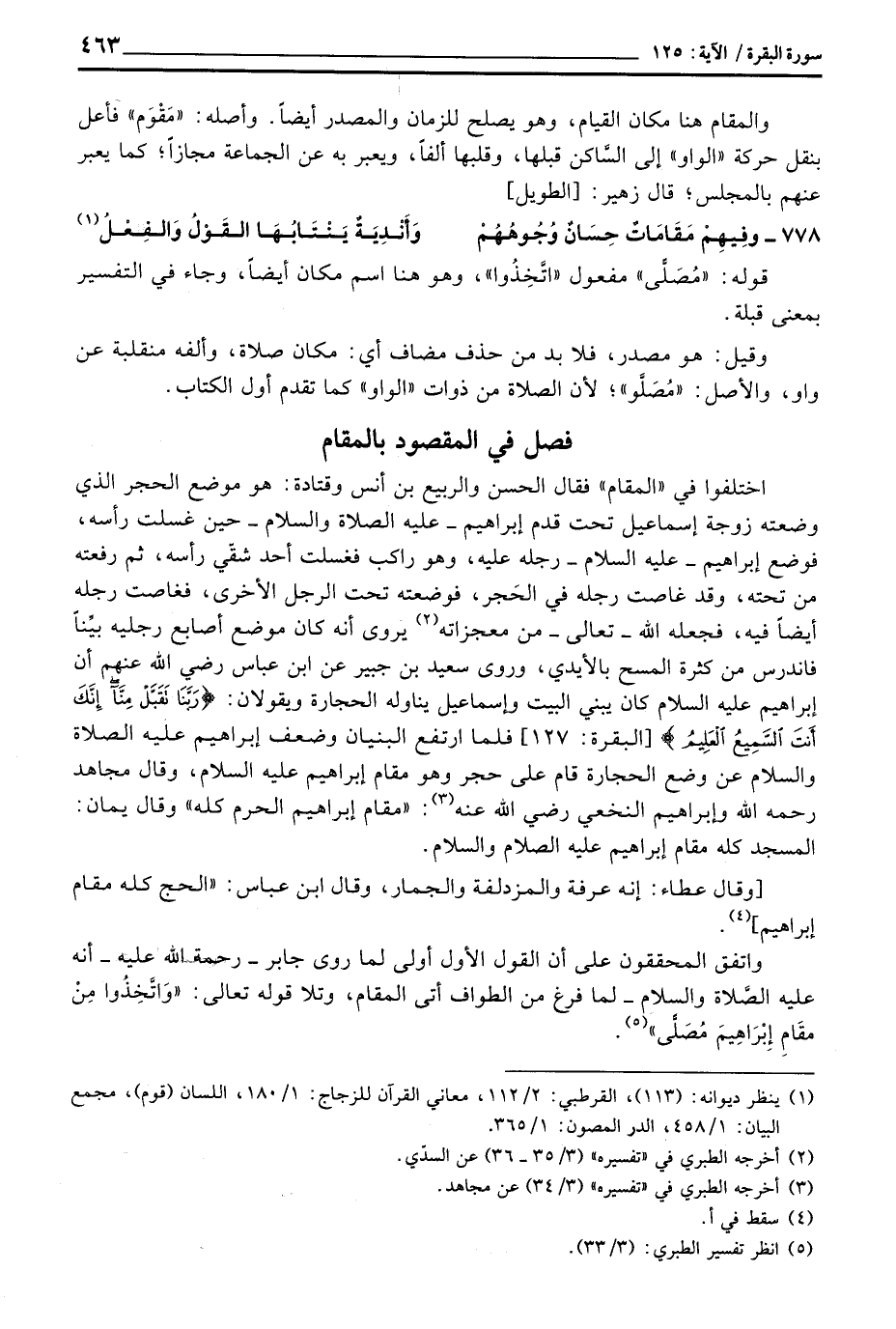 قوله: «مُصَلَّى» مفعلو «اتَّخِذُوا» ، وهو هنا اسم مكان أيضاً، وجاء في التفسير بعنى قبله.
