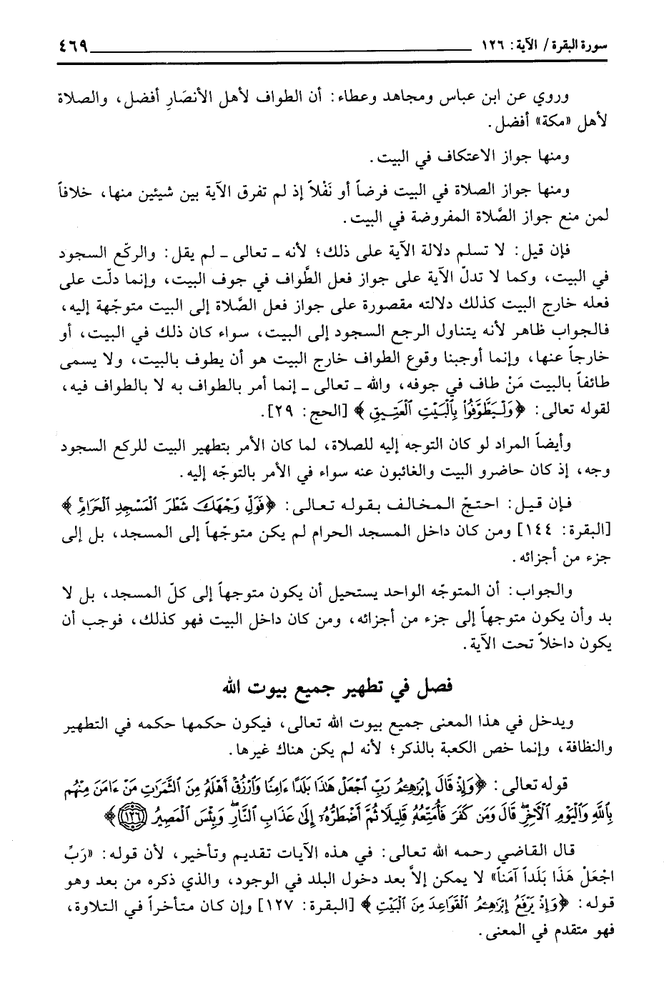وأيضاً المراد لو كان التوحه إليه للصلاة، لما كان الأمر بتطهير البيت للركع السجود وجه، إذ كان حاضرو البيت والغائبون عنه سواء في الأمر بالتوجّه إليه.