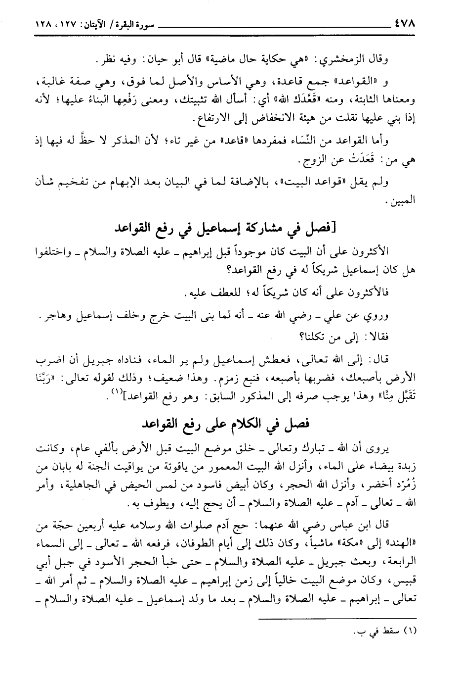 الأكثرون على أن البيت كان موجوداً قبل إبراهيم عَلَيْهِ الصَّلَاة وَالسَّلَام ُ واختلفوا هل كان إسماعيل شريكاً له في رفع القواعد؟