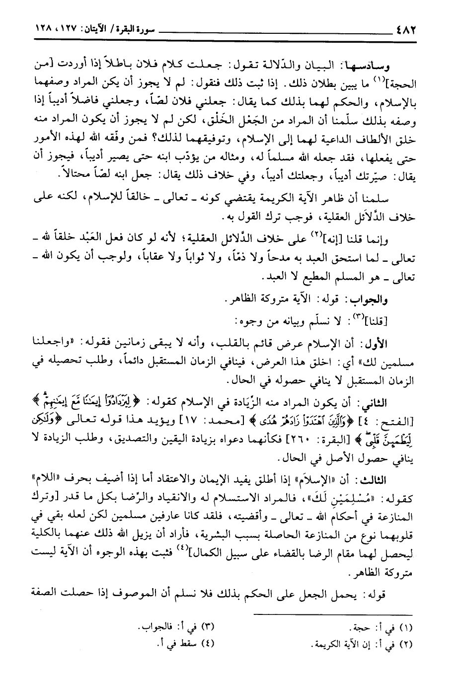 سلمان أن ظاهر الآية الكريمة يقتضي كونه تعالى خالقاً للإسلام، لكنه على خلاف الدَّلاَئل العقلية، فوجب ترك القول به.