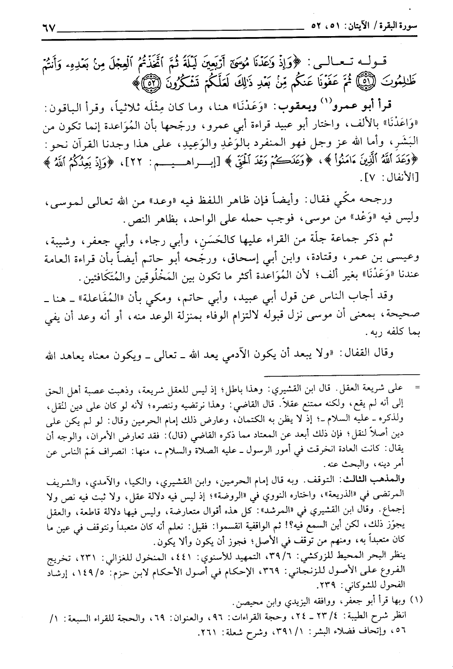 ثم ذكر جماعة جلّة من القراء عليها كالحَسَنِ، وإبي رجاء، وأبي جعفر، وشيبة، وعيسى بن عمر، وقتادة، وابن إسحاق، ورجّحه أبو حاتم أيضاً بأن قراءة العامة عندنا «وَعَدْنَا» بغير ألف؛ لأن المُوَاعدة أكثر ما تكون بين المَخْلُوقين والمُتَكَافئين.