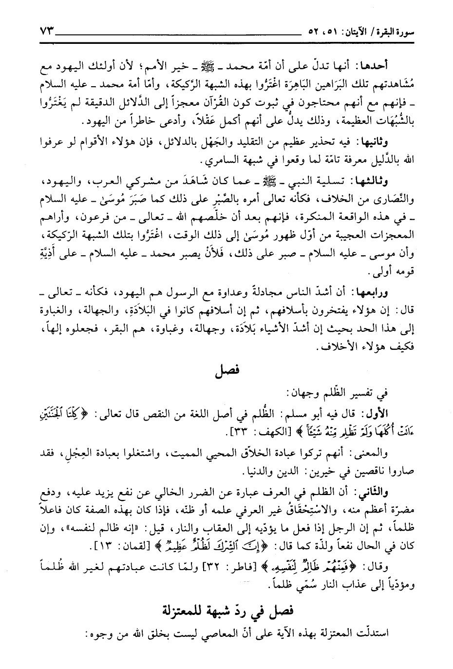ورابعها: أن اشدّ الناس مجادلةّ وعداوة مع الرسول هم اليهود، فكأنه تعالى قال: إن هؤلاء يفتخرون بأسلافهم، ثم إن أسلافهم كاانوا في البَلاَدَةِ، والجهالة، والغباوة إلى هذا الحد بحيث إن أشدّ الأشياء بَلاَدَة، وجهالة، وغباوة، هم البقر، فجعلوه إلهاً، فكيف هؤلاء الأخلاف.