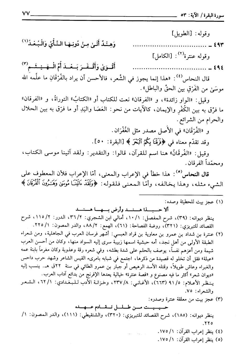قال النحاس: «هذا إنما يجوز في الشِّعر، فالأحسن أن يراد بالفُرْقَانِ ما علَّمه الله موسَى من الفَرْقِ بين الحقِّ والباطل» .