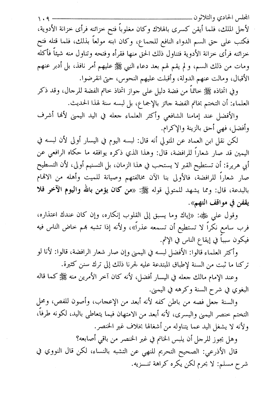 وأكثر العلماء قالوا: الأفضل لبسه في اليمنى وإن صار شعار الرافضة، قالوا: لأنا لو تركنا ما ثبت من السنة لإطباق المبتدعة عليه لجرنا ذلك إلى ترك سنن كثيرة.