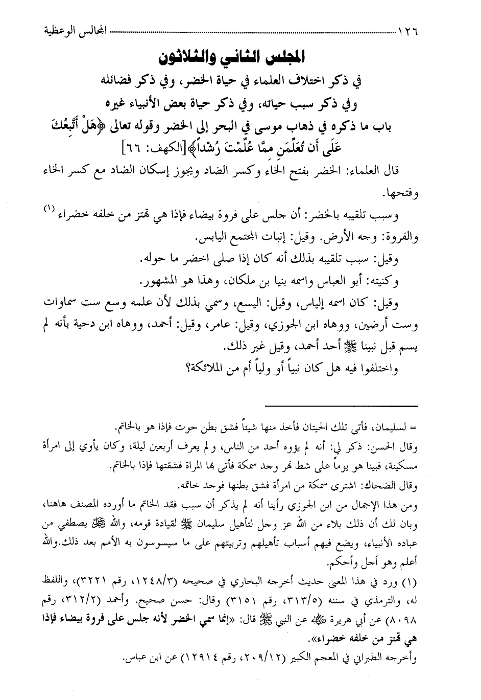 في ذكر اخنلاف العلماء في حياة الخضر، وفي ذكر فضائله