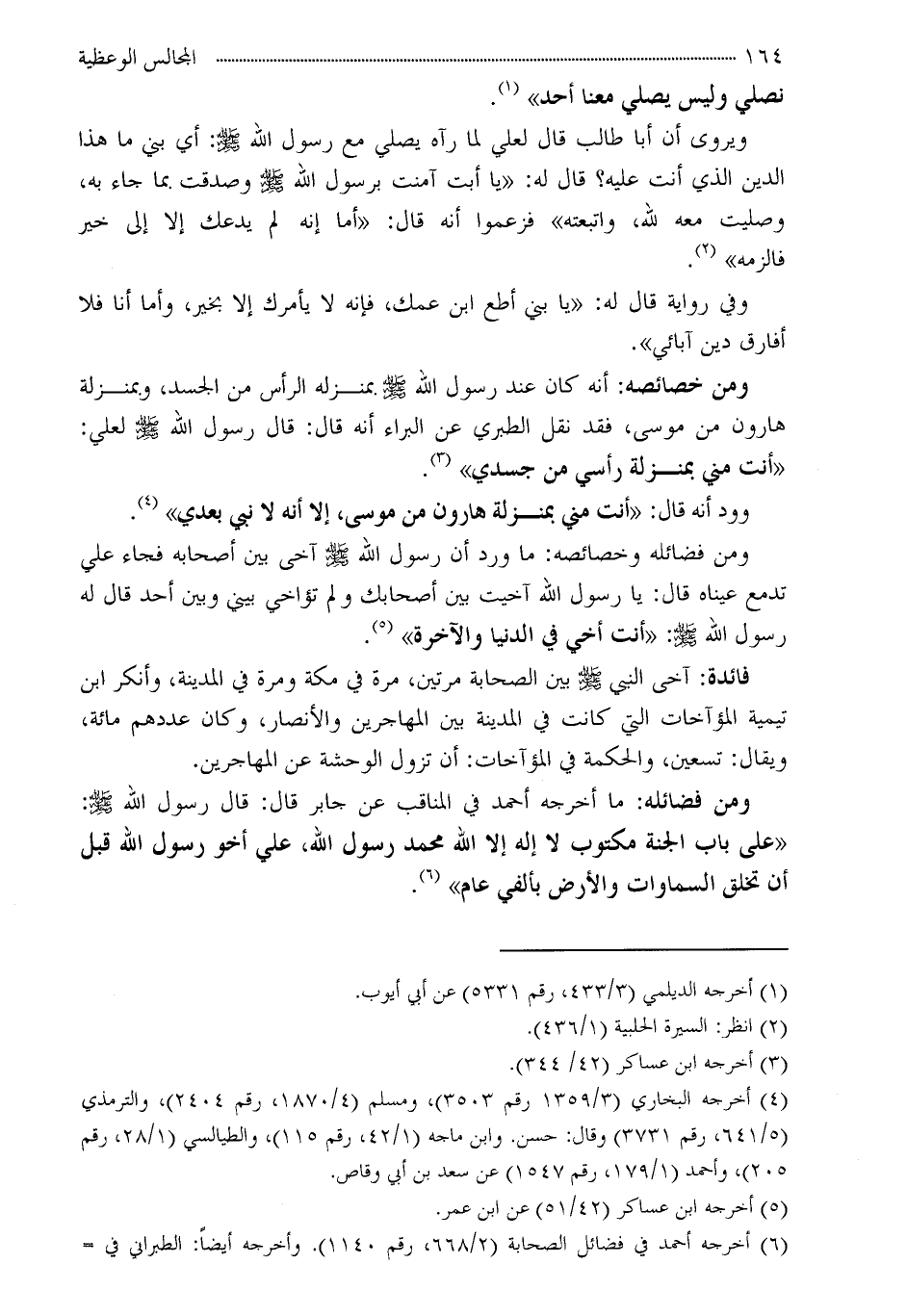 وود أنه قال: «أنت مني بمنزلة هارون من موسى، إلا أنه لا نبي بعدي» (¬4) .