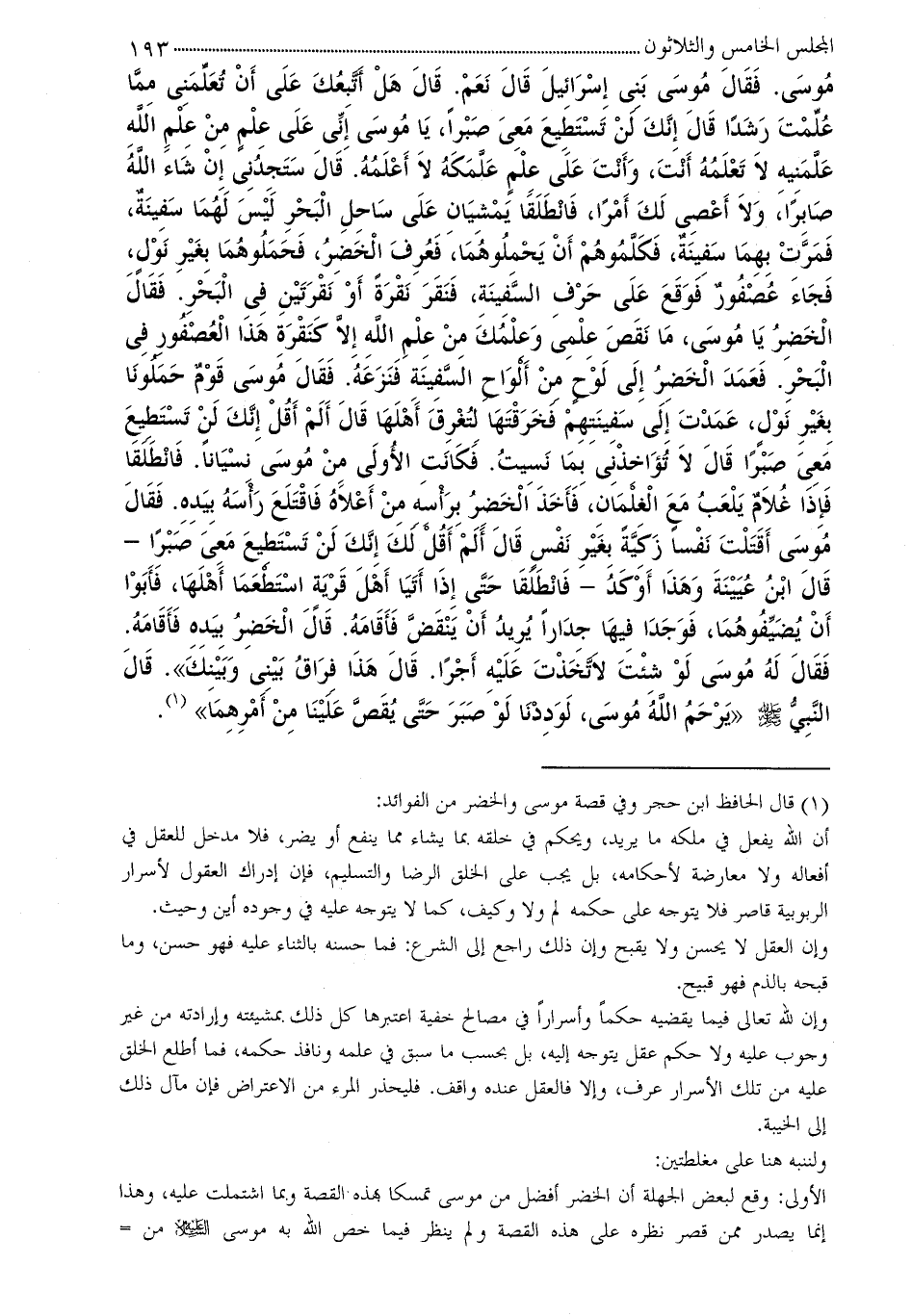 (¬1) قال الحافظ ابن حجر وفي قصة موسى والخضر من الفوائد: