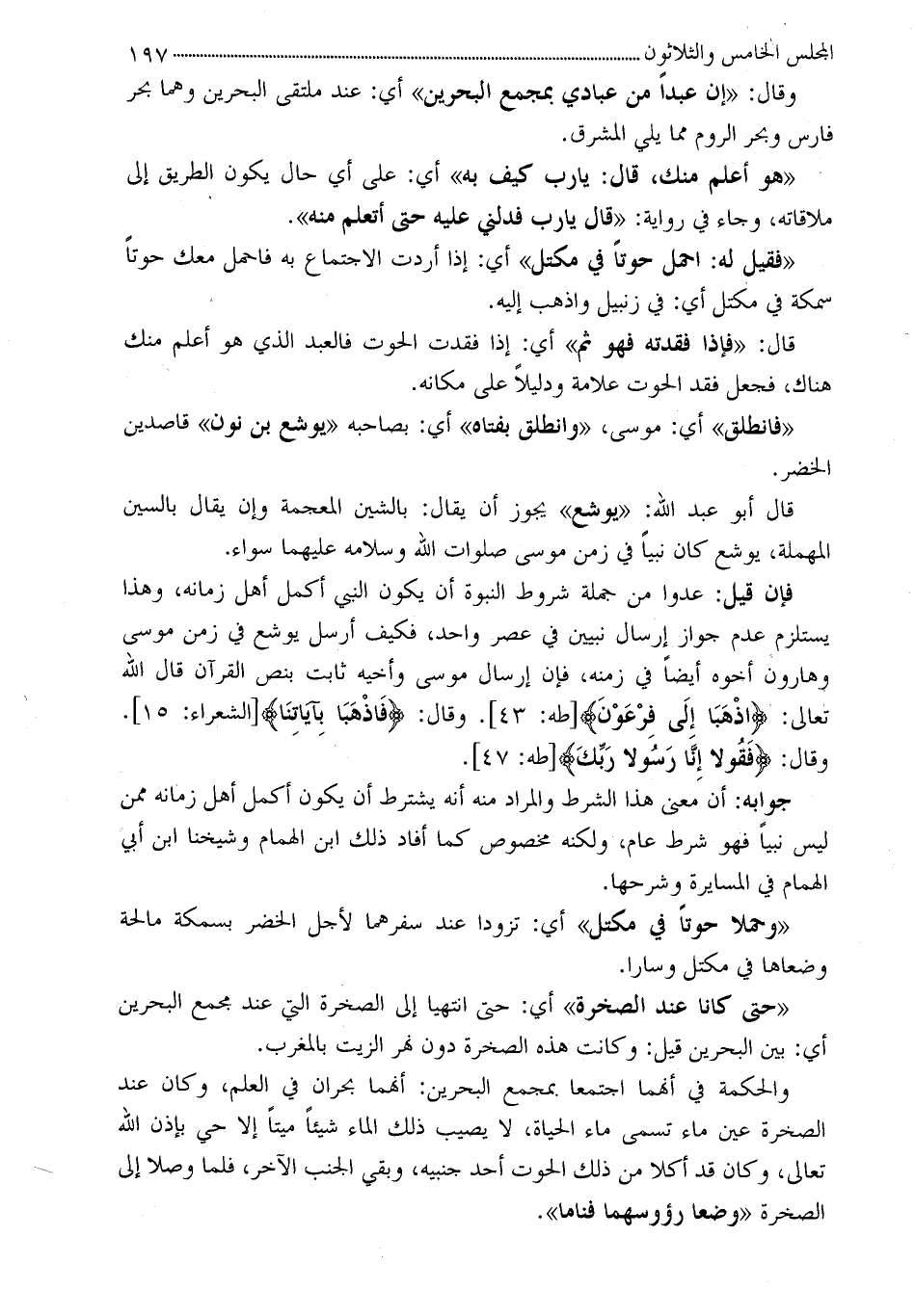 قال أبو عبد الله: «يوشع» يجوز أن يقال: بالشين المعجمة وإن يقال بالسين المهملة، يوشع كان نبياً في زمن موسى صلوات الله وسلامه عليهما سواء.