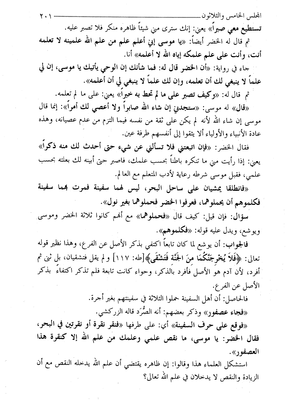 ثم قال له الخضر أيضاً: «يا موسى إني أعلم علم من علم الله علمينه لا تعلمه أنت، وأنت على علم علمكه إياه الله لا أعلمه» أنا.