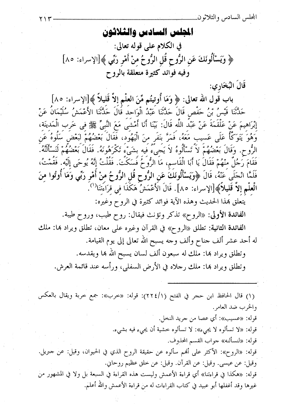 يتعلق بهذا الحديث وهذه الآية فوائد كثيرة في الروح وغيره:
