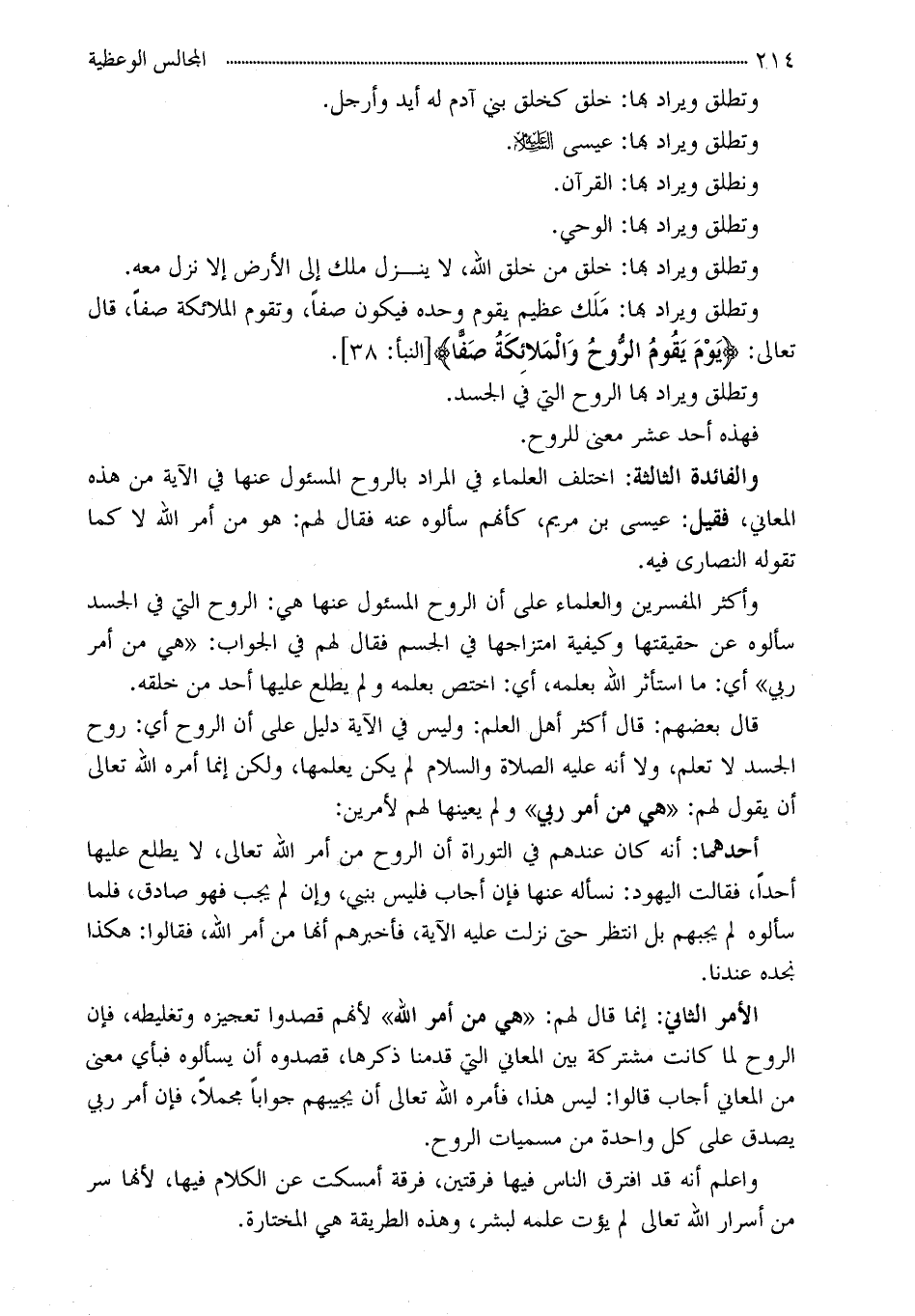 قال بعضهم: قال أكثر أهل العلم: وليس في الآية دليل على أن الروح أي: روح الجسد لا تعلم، ولا أنه عليه الصلاة والسلام لم يكن يعلمها، ولكن إنما أمره الله تعالى أن يقول لهم: «هي من أمر ربي» ولم يعينها لهم لأمرين: