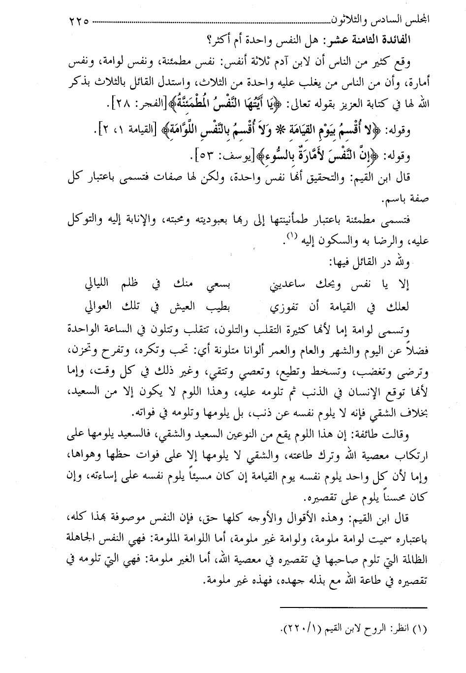 الفائدة الثامنة عشر: هل النفس واحدة أم أكثر؟