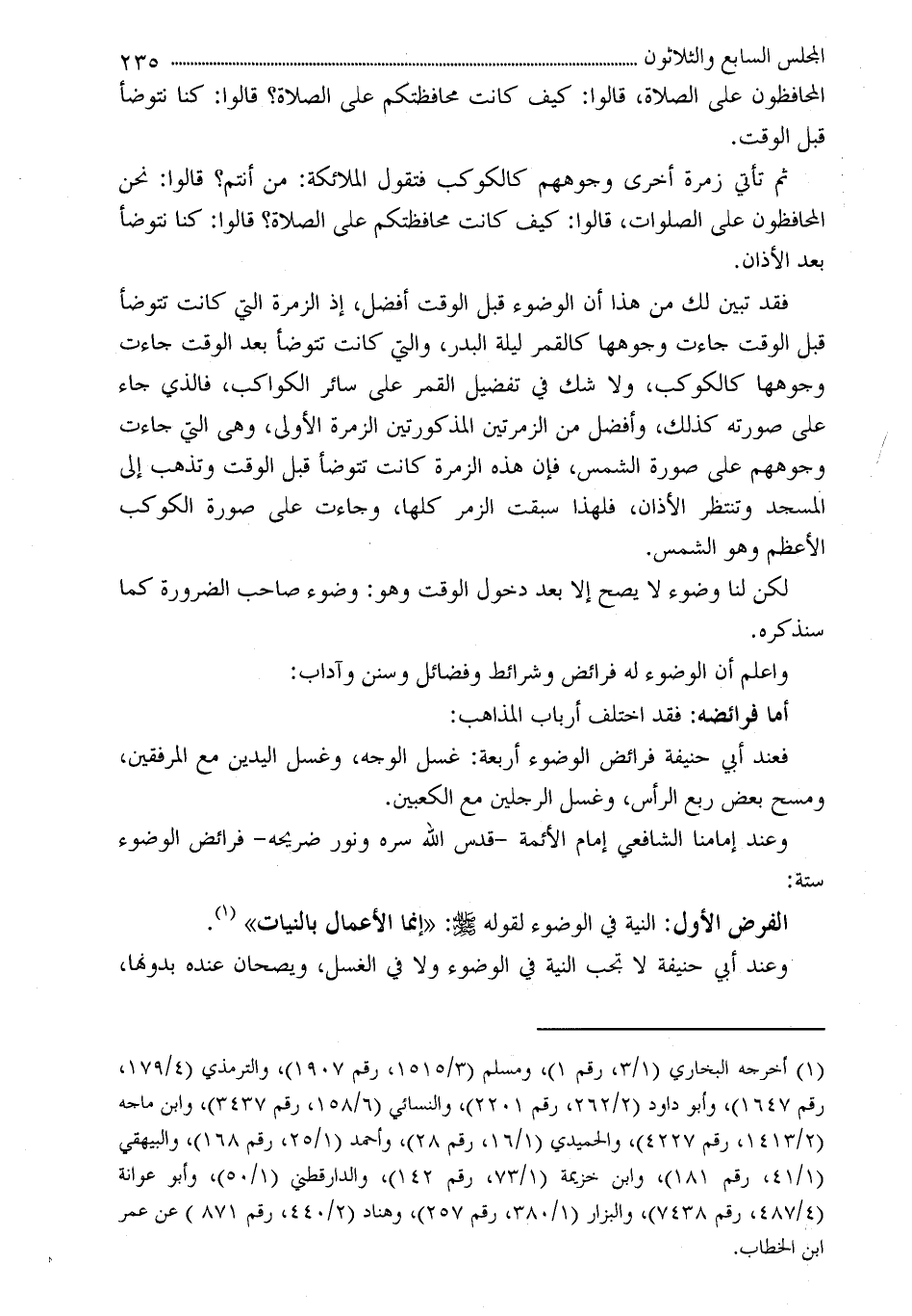 (¬1) أخرجه البخاري (1/3، رقم 1) ، ومسلم (3/1515، رقم 1907) ، والترمذي (4/179، رقم 1647) ، وأبو داود (2/262، رقم 2201) ، والنسائي (6/158، رقم 3437) ، وابن ماجه (2/1413، رقم 4227) ، والحميدي (1/16، رقم 28) ، وأحمد (1/25، رقم 168) ، والبيهقي (1/41، رقم 181) ، وابن خزيمة (1/73، رقم 142) ، والدارقطني (1/50) ، وأبو عوانة (4/487، رقم 7438) ، والبزار (1/380، رقم 257) ، وهناد (2/440، رقم 871) عن عمر بن الخطاب.