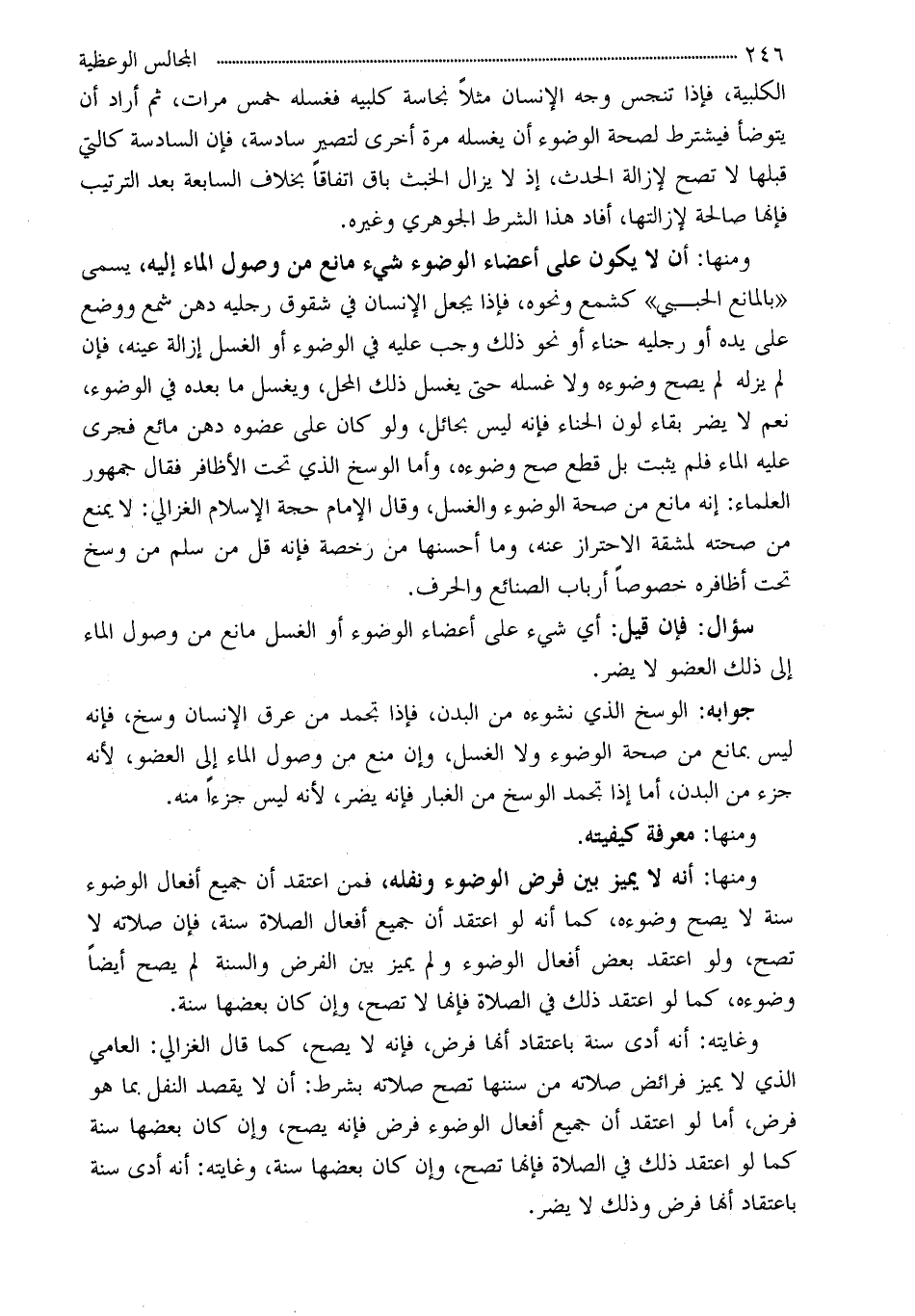 سؤال: فإن قيل: أي شيء على أعضاء الوضوء أو الغسل مانع من وصول الماء إلى ذلك العضو لا يضر.