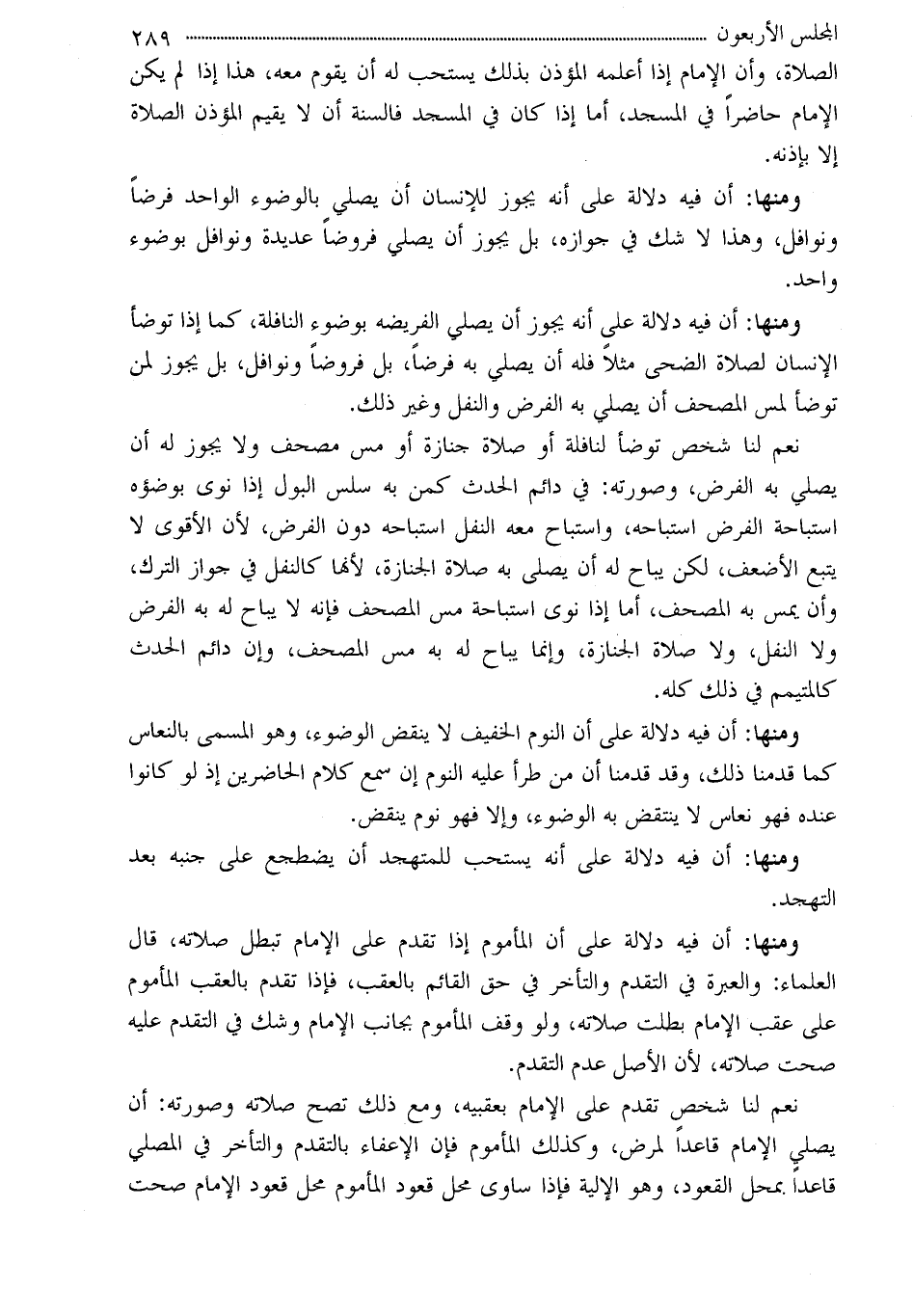 ومنها: أن فيه دلالة على أنه يجوز أن يصلي الفريضه بوضوء النافلة، كما إذا توضأ الإنسان لصلاة الضحى مثلاً فله أن يصلي به فرضاً، بل فروضاً ونوافل، بل يجوز لمن توضأ لمس المصحف أن يصلي به الفرض والنفل وغير ذلك.