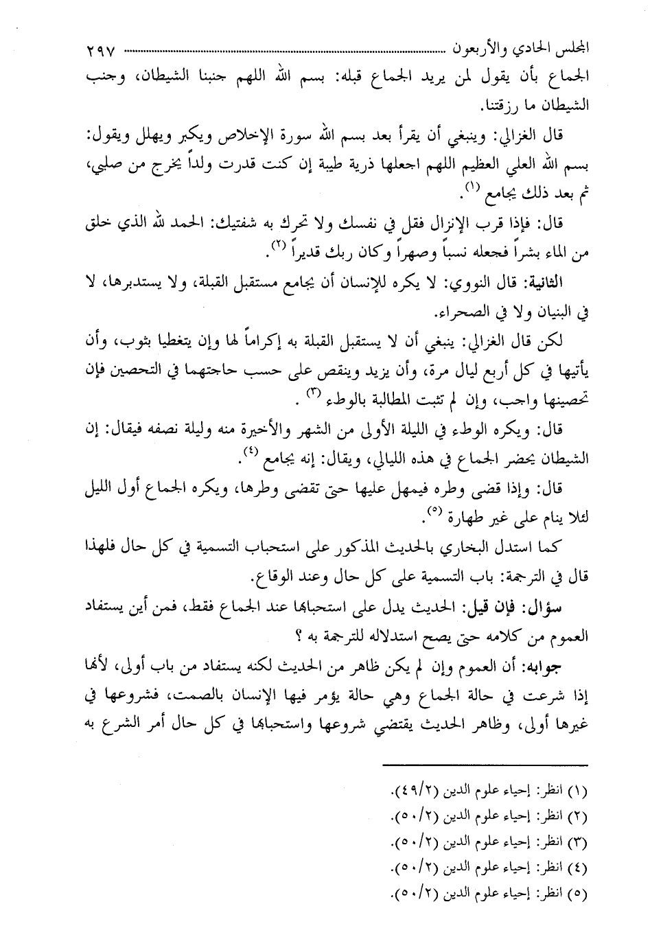 (¬5) انظر: إحياء علوم الدين (2/50) .
