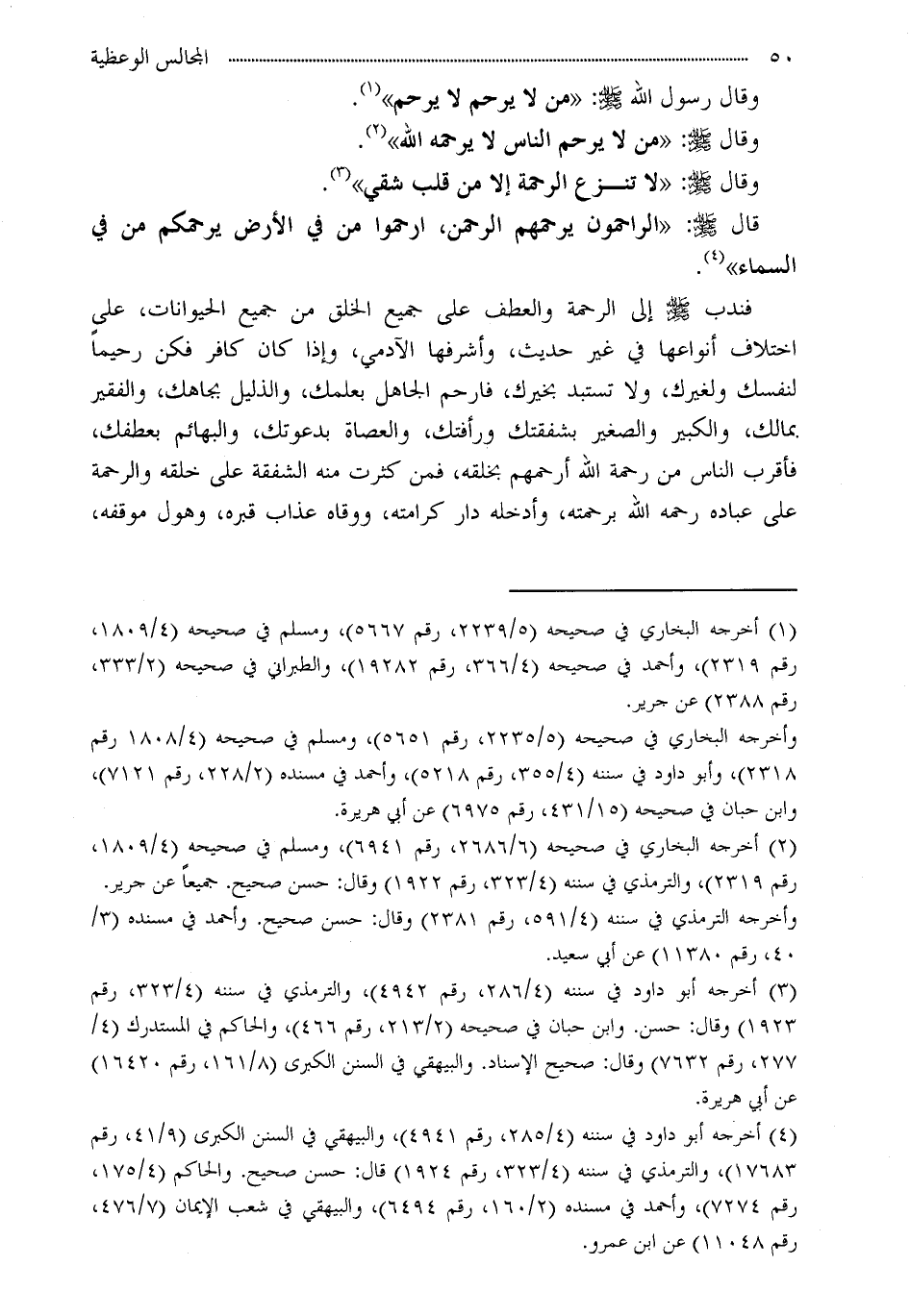 قال - صلى الله عليه وسلم -: «الراحمون يرحمهم الرحمن، ارحموا من في الأرض يرحمكم من في السماء» (¬4) .