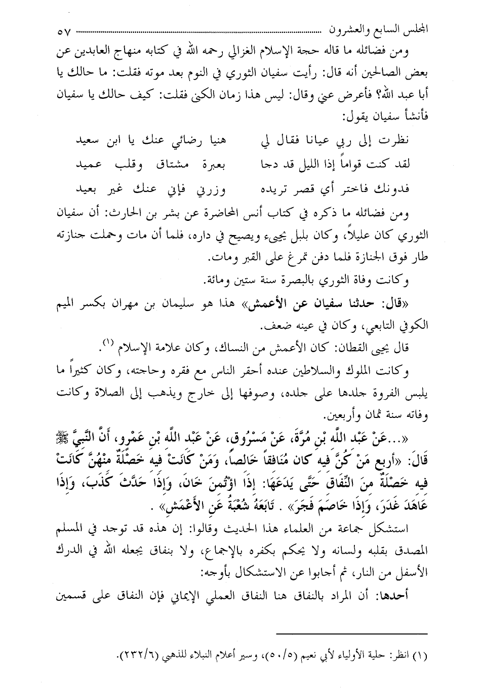 (¬1) انظر: حلية الأولياء لأبي نعيم (5/50) ، وسير أعلام النبلاء للذهبي (6/232) .