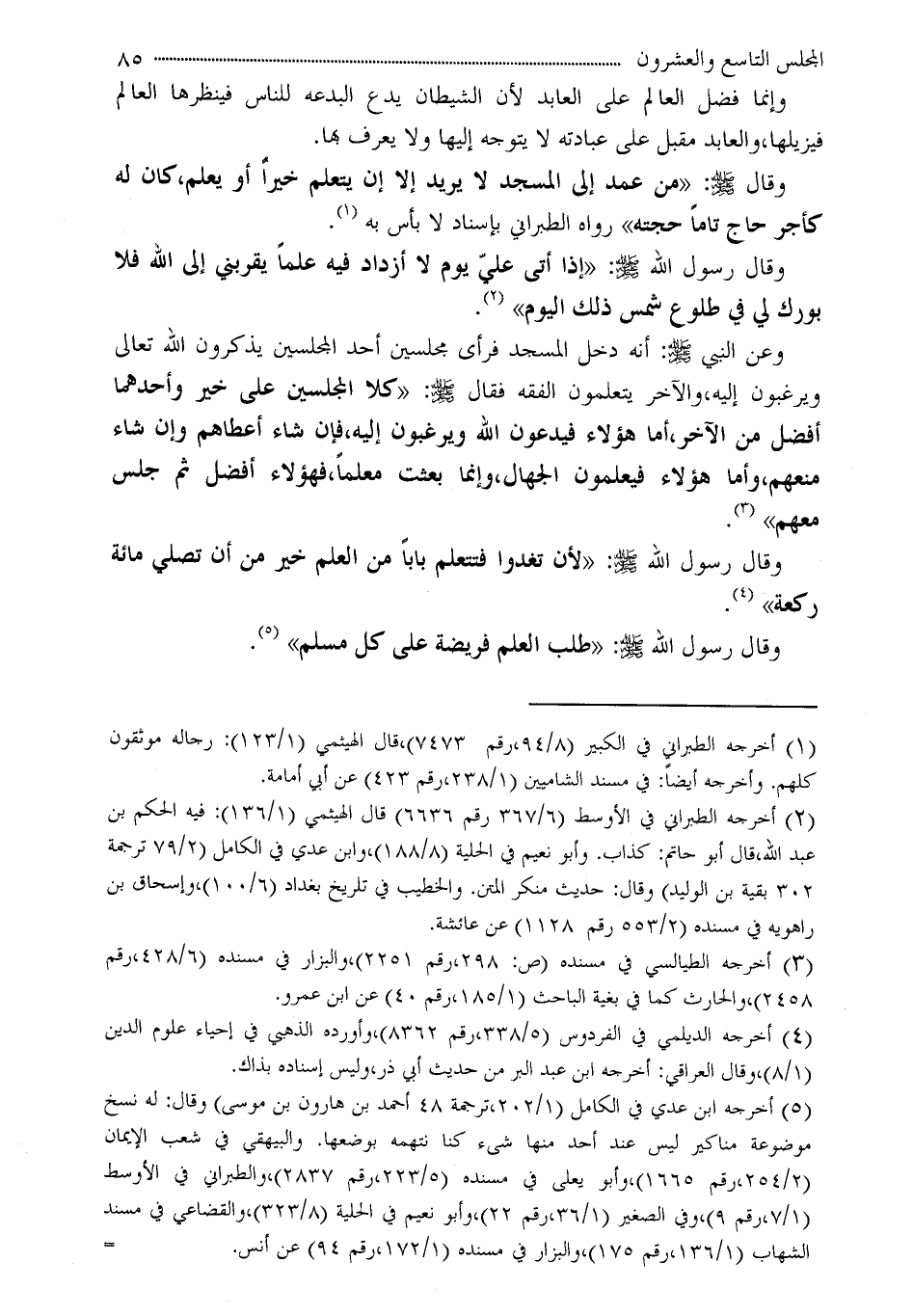 وقال رسول الله - صلى الله عليه وسلم -: «لأن تغدوا فتتعلم باباً من العلم خير من أن تصلي مائة ركعة» (¬4) .