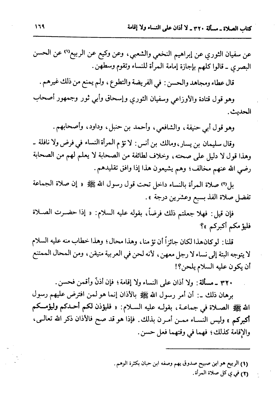 320 - مَسْأَلَةٌ: وَلَا أَذَانَ عَلَى النِّسَاءِ وَلَا إقَامَةَ؛ فَإِنْ أَذَّنَّ، وَأَقَمْنَ فَحَسَنٌ.