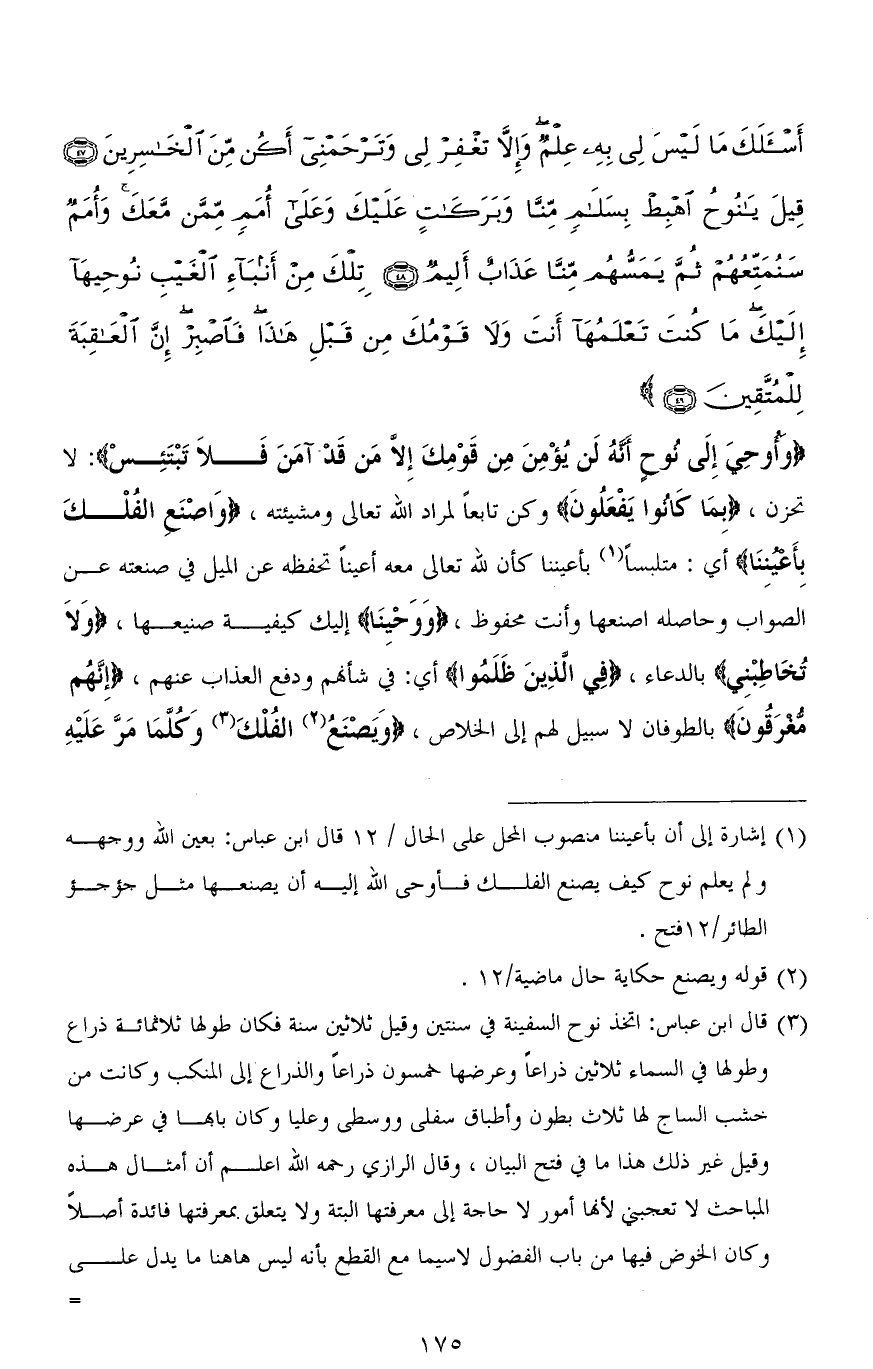 أَسْأَلَكَ مَا لَيْسَ لِي بِهِ عِلْمٌ وَإِلَّا تَغْفِرْ لِي وَتَرْحَمْنِي أَكُنْ مِنَ الْخَاسِرِينَ (47) قِيلَ يَا نُوحُ اهْبِطْ بِسَلَامٍ مِنَّا وَبَرَكَاتٍ عَلَيْكَ وَعَلَى أُمَمٍ مِمَّنْ مَعَكَ وَأُمَمٌ سَنُمَتِّعُهُمْ ثُمَّ يَمَسُّهُمْ مِنَّا عَذَابٌ أَلِيمٌ (48) تِلْكَ مِنْ أَنْبَاءِ الْغَيْبِ نُوحِيهَا إِلَيْكَ مَا كُنْتَ تَعْلَمُهَا أَنْتَ وَلَا قَوْمُكَ مِنْ قَبْلِ هَذَا فَاصْبِرْ إِنَّ الْعَاقِبَةَ لِلْمُتَّقِينَ (49)