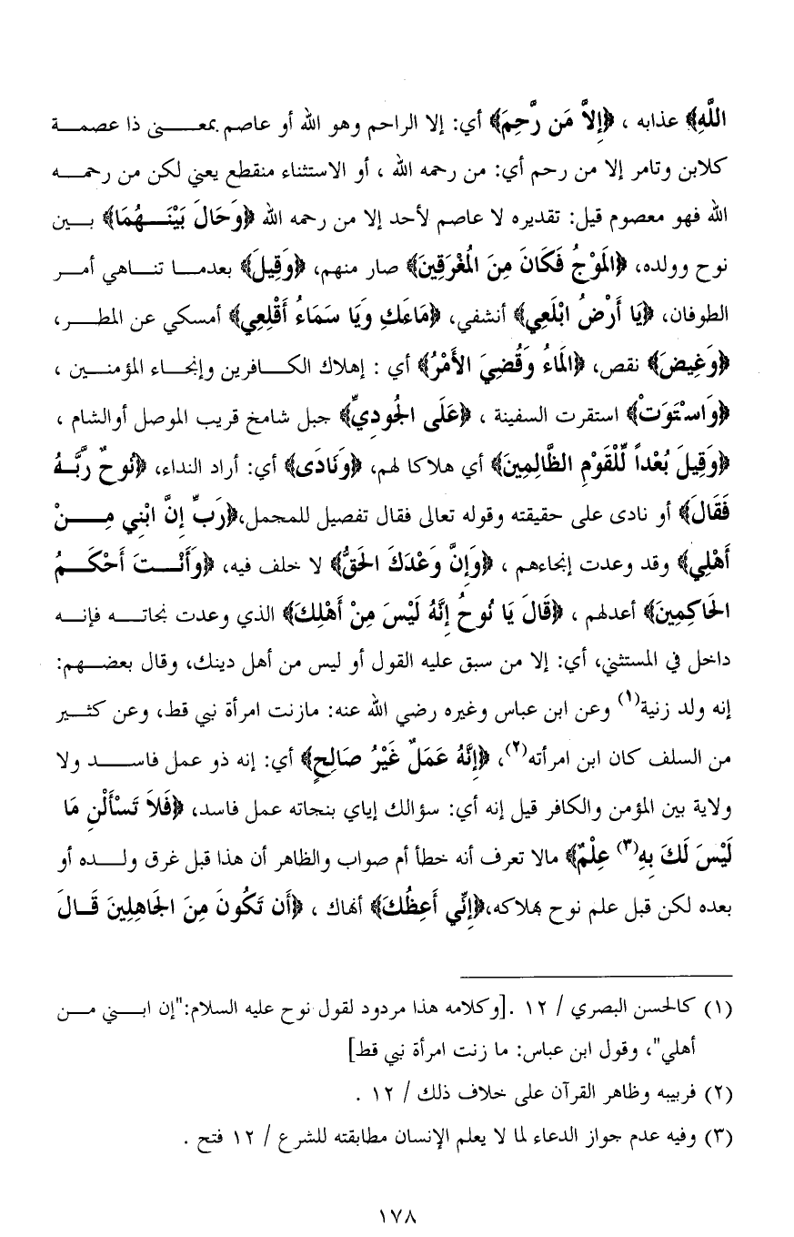 (1) كالحسن البصري، وكلامه هذا مردود لقوله تعالى (وَنَادَى نُوحٌ ابْنَهُ) وقول نوح عليه السلام: (إِنَّ ابْنِي مِنْ أَهْلِي)، وقول ابن عباس: ما زنت امرأة نبيٍّ قط.
