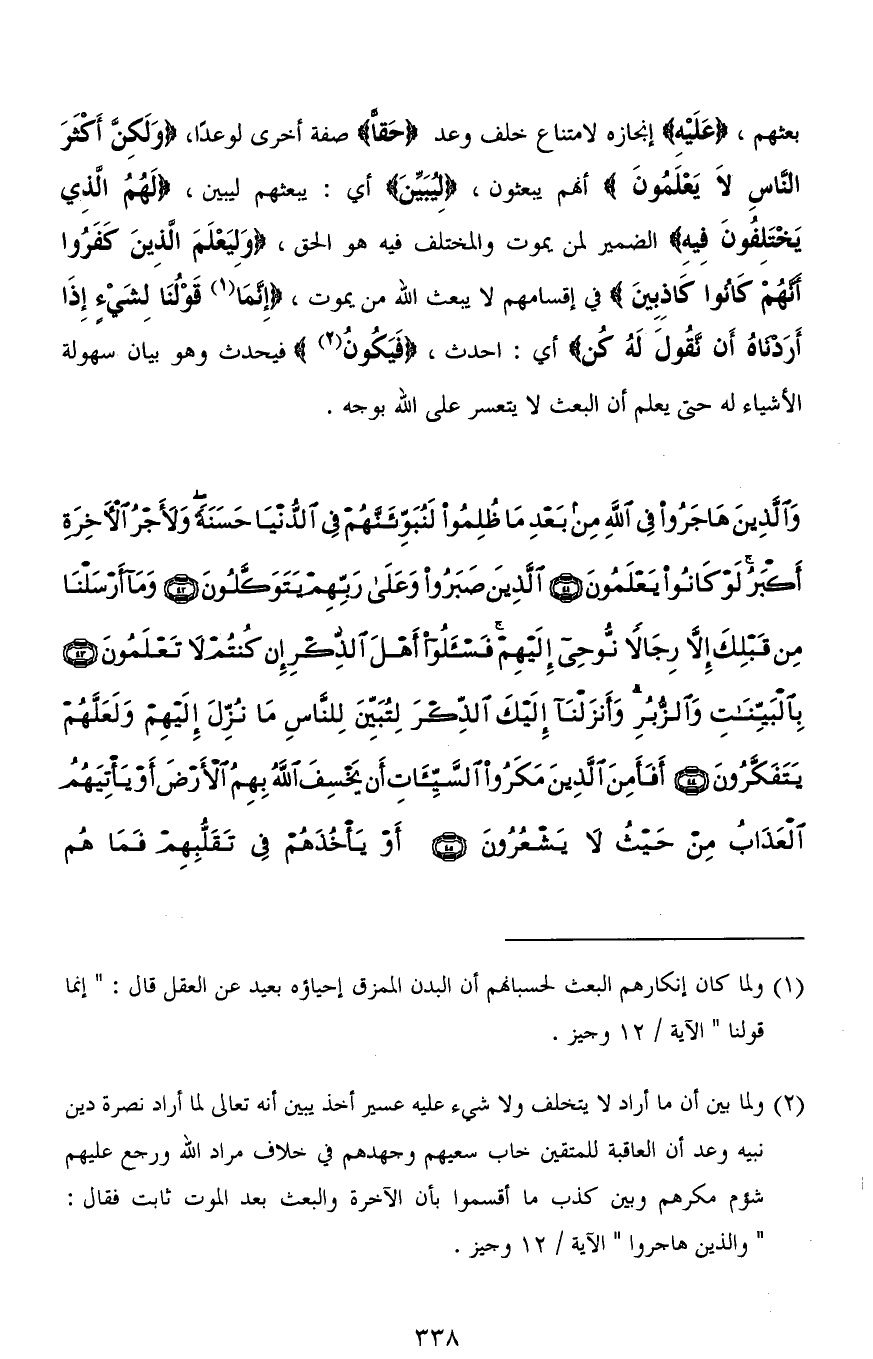 بعثهم، (عليهِ) إنجازه لامتناع خلف وعد (حَقًّا) صفة أخرى لوعدًا، (وَلَكِنَّ أَكْثَرَ النَّاسِ لَا يَعْلَمُونَ) أنَّهم يبعثون، (لِيُبَيِّنَ) أي: يبعثهم ديبين، (لَهُمُ الَّذِي يَخْتَلِفُونَ فِيهِ) الضمير لمن يموت والمختلف فيه هو الحق، (وَلِيَعْلَمَ الَّذِينَ كَفَرُوا أَنَّهُمْ كَانُوا كَاذِبِينَ) في إقسامهم لا يبعث الله من يموت، (إِنَّمَا قَوْلُنَا لِشَيْءٍ إِذَا أَرَدْنَاهُ أَنْ نَقُولَ لَهُ كُنْ) أي: احدث، (فَيَكُونُ) فيحدث وهو بيان سهولة الأشياء له حتى يعلم أن البعث لا يتعسر على الله بوجه.