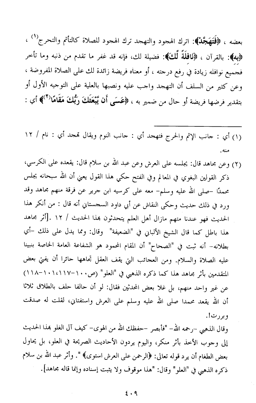 بعضه، (فَتَهَجَّدْ): اترك الهجود والتهجد ترك الهجود للصلاة كالتأثم والتحرج، (بِهِ): بالقرآن، (نَافِلَةً لَكَ): فضيلة لك، فإنه قد غفر ما تقدم من ذنبه وما تأخر فجميع نوافله زيادة في رفع درجته، أو معناه فريضة زائدة لك على الصلاة المفروضة، وعن كثير من السلف أن التهجد واجب عليه ونصبها بالعلية على التوجيه الأول أو بتقدير فرضها فريضة أو حال من ضمير به، (عَسَى أَنْ يَبْعَثَكَ رَبُّكَ مَقَامًا) أي: