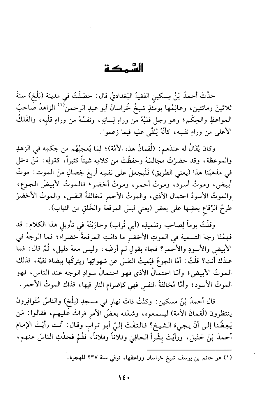 1 هو حاتم بن يوسف شيخ خراسان وواعظها، توفي سنة 237 للهجرة.