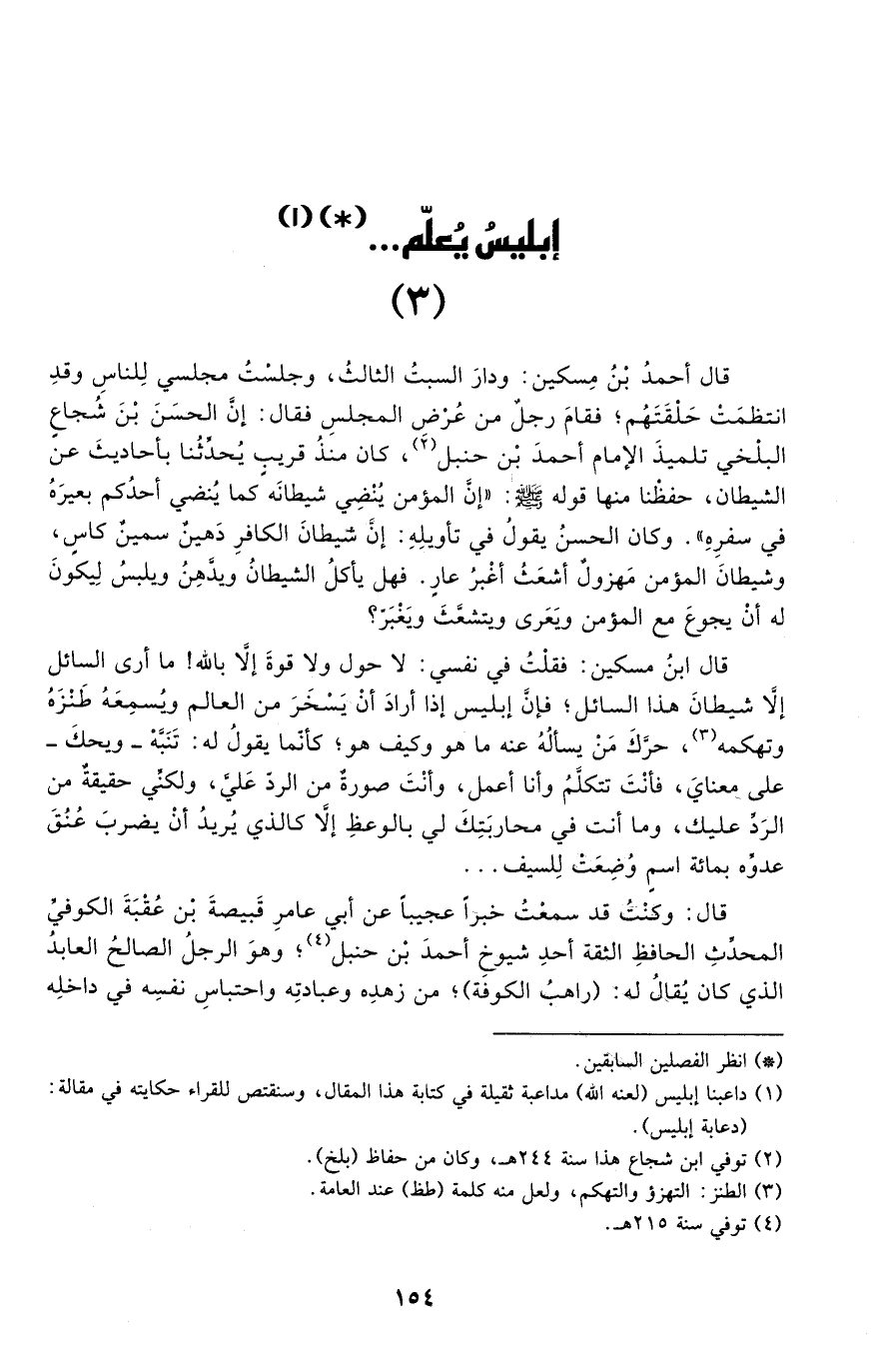 1 داعبنا إبليس "لعنه الله" مداعبة ثقيلة في كتابة هذا المقال، وسنقتص للقراء حكاتيه في مقالة: "دعابة إبليس".