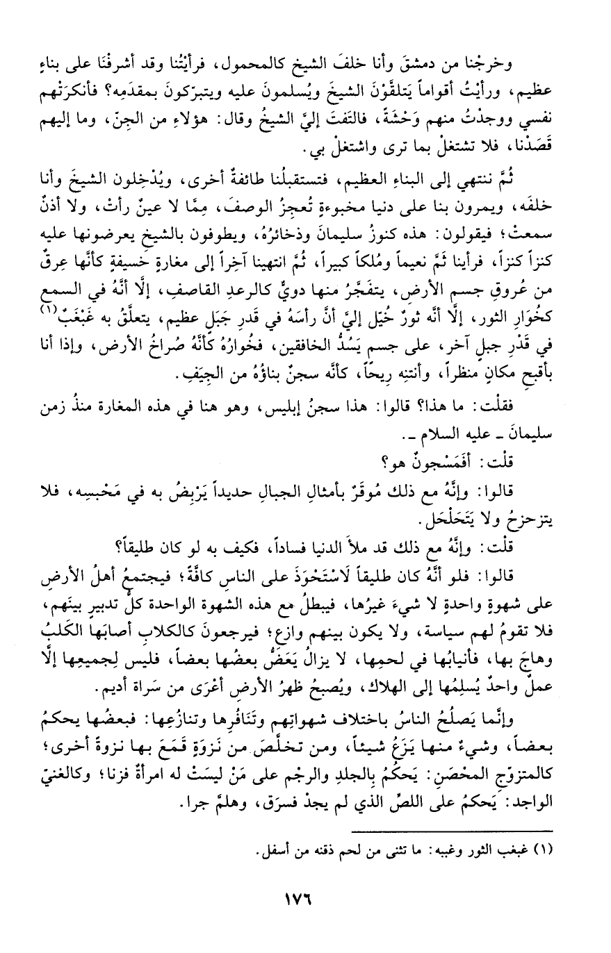 فقلت: ما هذا؟ قالوا: هذا سجن إبليس، وهو هنا في هذه المغارة منذ زمن سليمان عليه السلام.