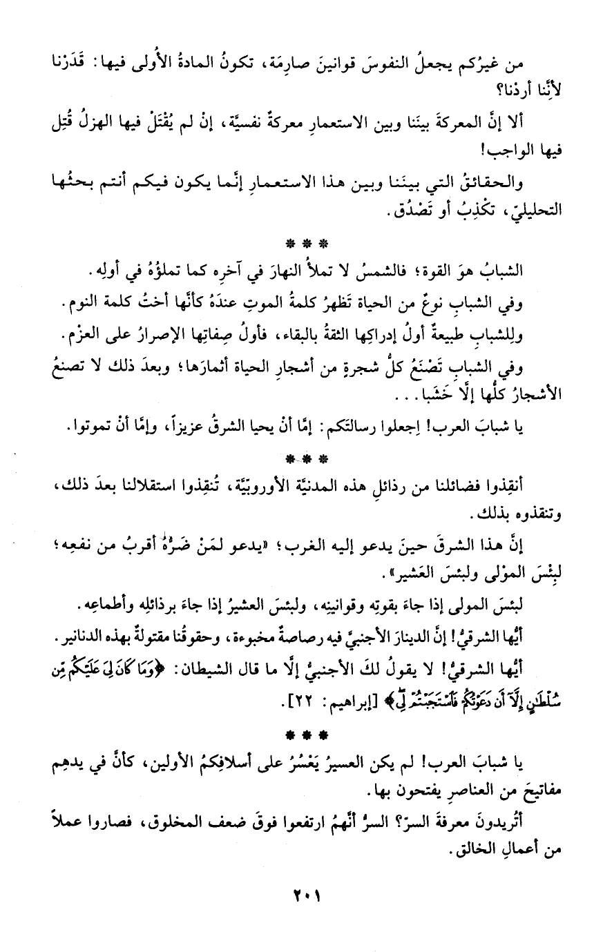 يا شباب العرب! اجعلوا رسالتكم: إما أن يحيا الشرق عزيزًا، وإما أن تموتوا.