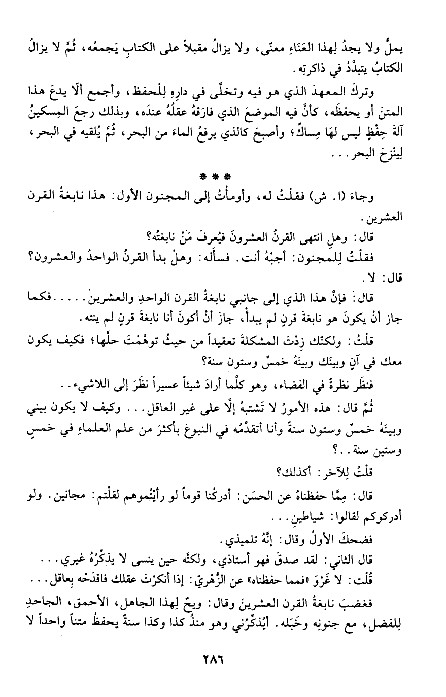 وجاء "ا. ش" فقلت له، وأومأت إلى المجنون الأول: هذا نابغة القرن العشرين.