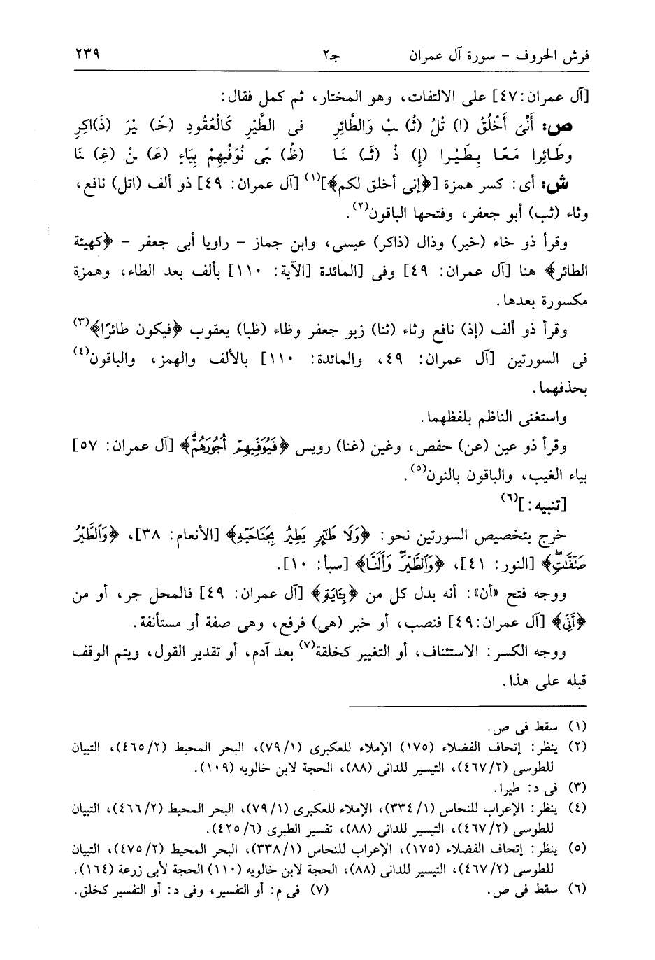 (¬5) ينظر: إتحاف الفضلاء (175)، الإعراب للنحاس (1/ 338)، البحر المحيط (2/ 475)، التبيان للطوسى (2/ 467)، التيسير للدانى (88)، الحجة لابن خالويه (110) الحجة لأبى زرعة (164).