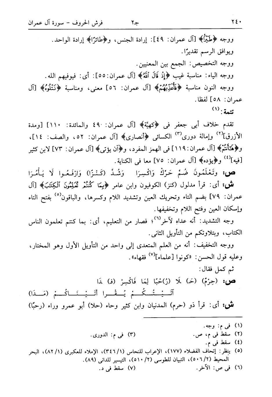(¬5) ينظر: إتحاف الفضلاء (177)، الإعراب للنحاس (1/ 346)، الإملاء للعكبرى (1/ 82)، البحر المحيط (2/ 506)، التبيان للطوسى (2/ 510)، التيسير للدانى (89).