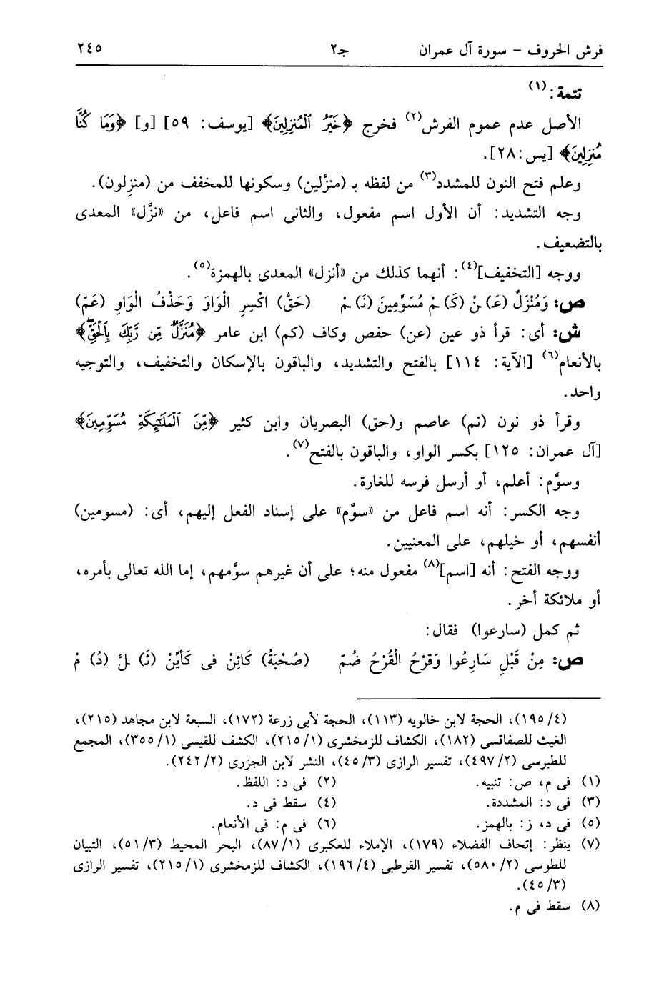 (¬7) ينظر: إتحاف الفضلاء (179)، الإملاء للعكبرى (1/ 87)، البحر المحيط (3/ 51)، التبيان للطوسى (2/ 580)، تفسير القرطبى (4/ 196)، الكشاف للزمخشرى (1/ 215)، تفسير الرازى (3/ 45).