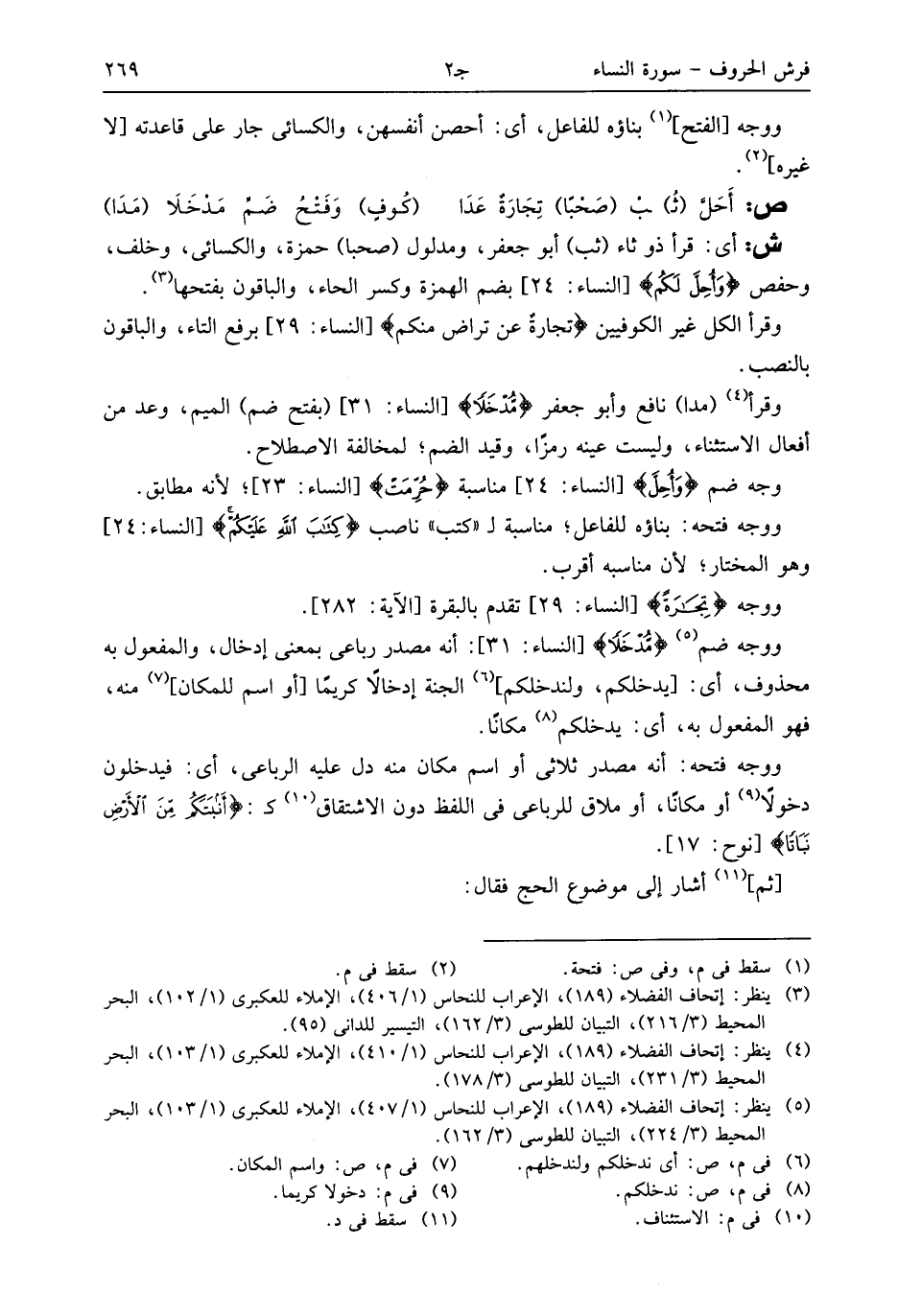 (¬5) ينظر: إتحاف الفضلاء (189)، الإعراب للنحاس (1/ 407)، الإملاء للعكبرى (1/ 103)، البحر المحيط (3/ 224)، التبيان للطوسى (3/ 162).
