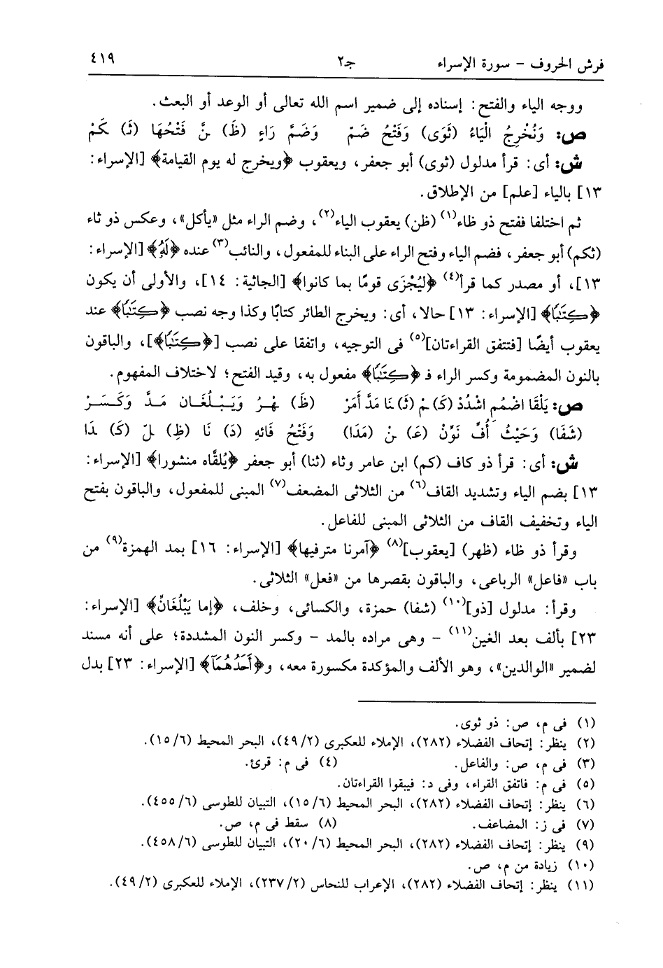 (¬11) ينظر: إتحاف الفضلاء (282)، الإعراب للنحاس (2/ 237)، الإملاء للعكبرى (2/ 49).