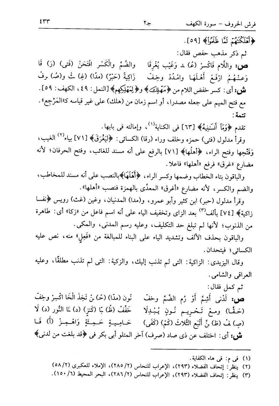 (¬3) ينظر: إتحاف الفضلاء (293)، الإعراب للنحاس (2/ 286)، البحر المحيط (6/ 150).