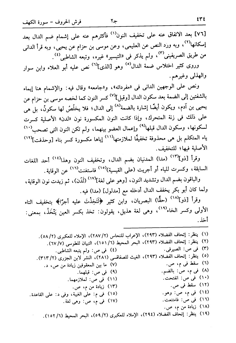 (¬19) ينظر: إتحاف الفضلاء (294)، الإملاء للعكبرى (2/ 59)، البحر المحيط (6/ 152).