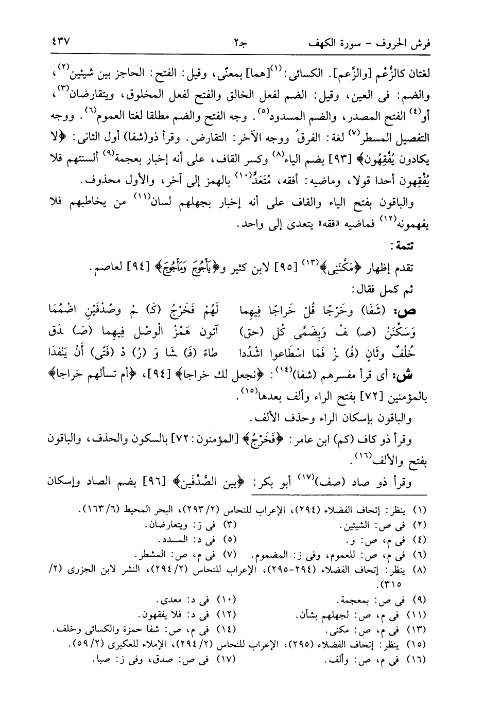 (¬8) ينظر: إتحاف الفضلاء (294 - 295)، الإعراب للنحاس (2/ 294)، النشر لابن الجزرى (2/ 315).