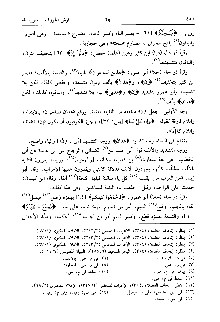 (¬4) ينظر: إتحاف الفضلاء (304)، البحر المحيط (6/ 255)، التبيان للطوسى (7/ 161).