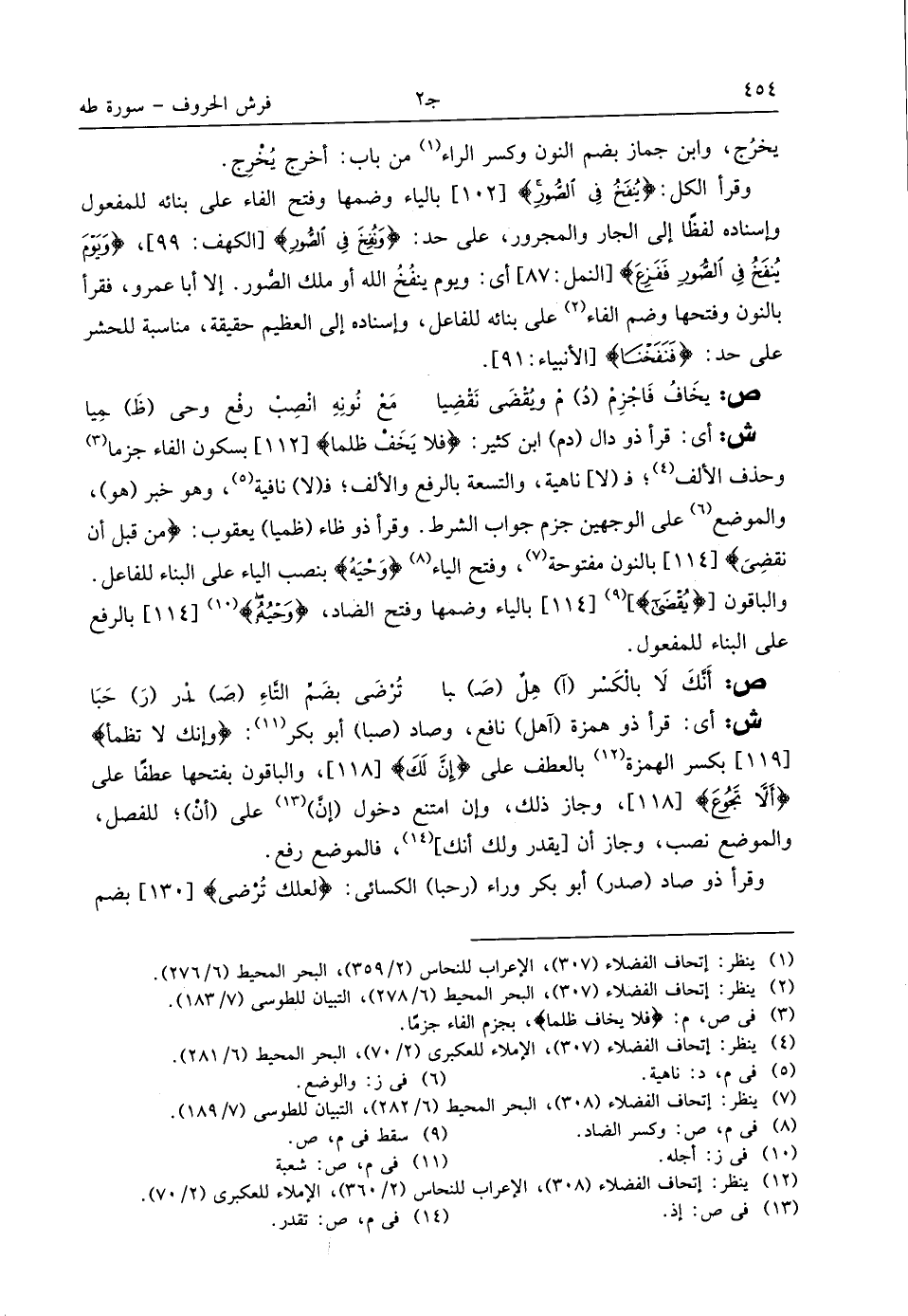 (¬2) ينظر: إتحاف الفضلاء (307)، البحر المحيط (6/ 278)، التبيان للطوسى (7/ 183).