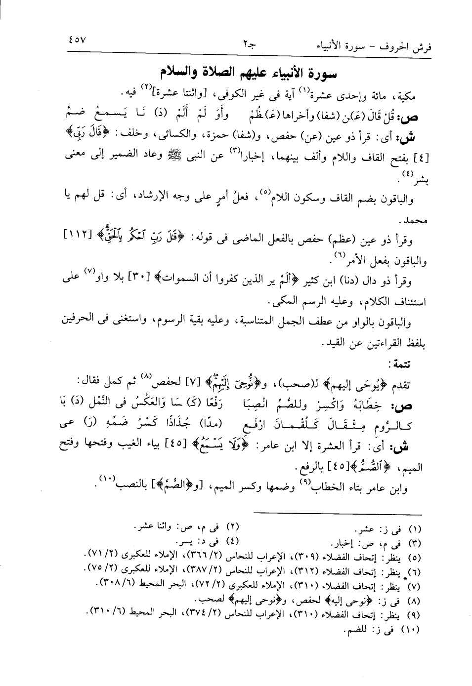 (¬6) ينظر: إتحاف الفضلاء (312)، الإعراب للنحاس (2/ 387)، الإملاء للعكبرى (2/ 75).
