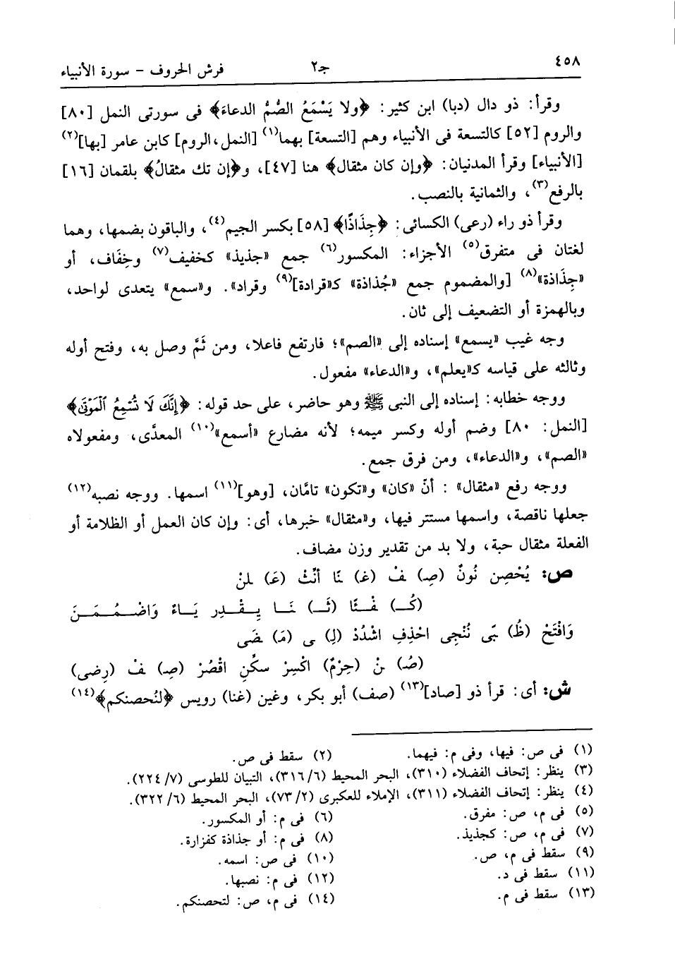 (¬3) ينظر: إتحاف الفضلاء (310)، البحر المحيط (6/ 316)، التبيان للطوسى (7/ 224).