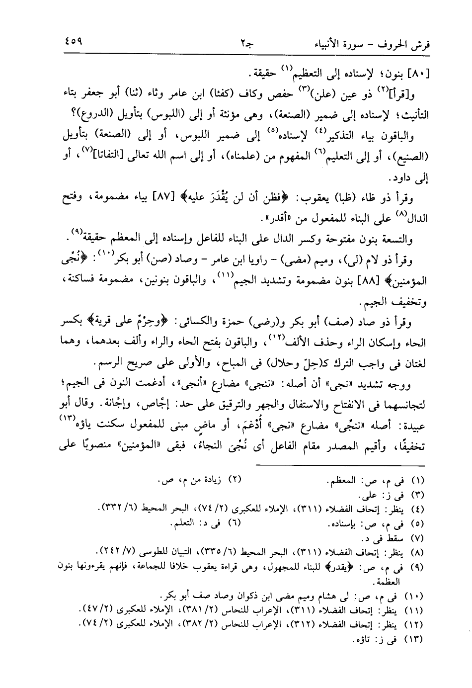 (¬12) ينظر: إتحاف الفضلاء (312)، الإعراب للنحاس (2/ 382)، الإملاء للعكبرى (2/ 74).